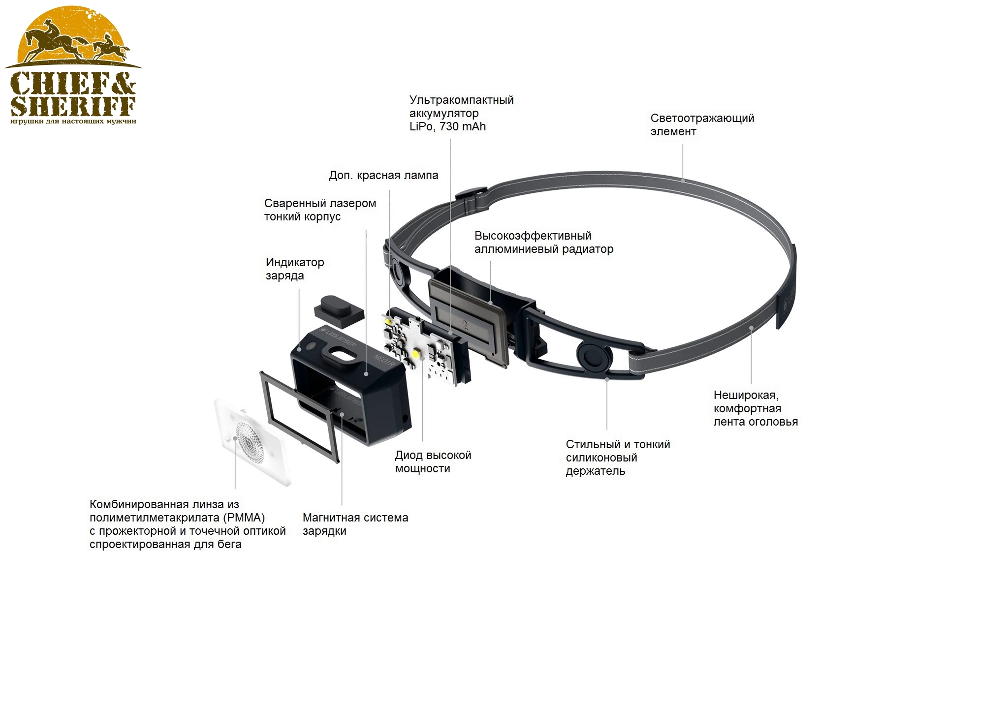 Magnetic Charge System - с помощью магнитной системы зарядный кабель быстро и легко подключается к фонарю.