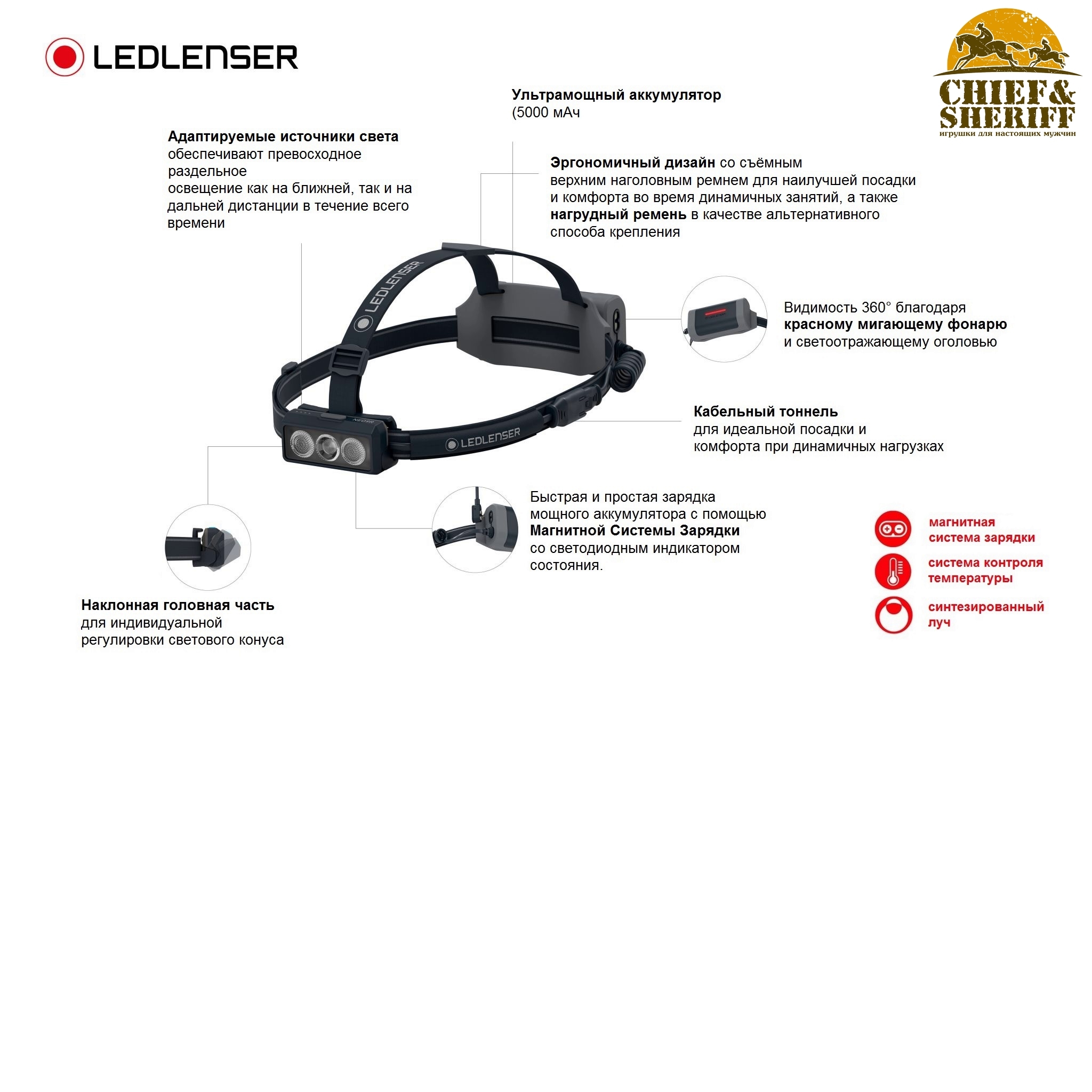 В фонаре Ledlenser NEO9R реализованы следующие фирменные запатентованные технологии и полезные функции: