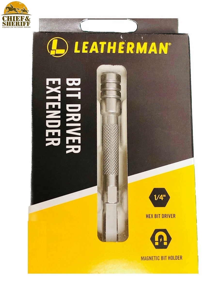 Удлинитель (83 мм) изготовлен из высокопрочной стали, оснащен пружинным держателем бит и подходит для всех мультитулов Leatherman имеющих битодержатель.