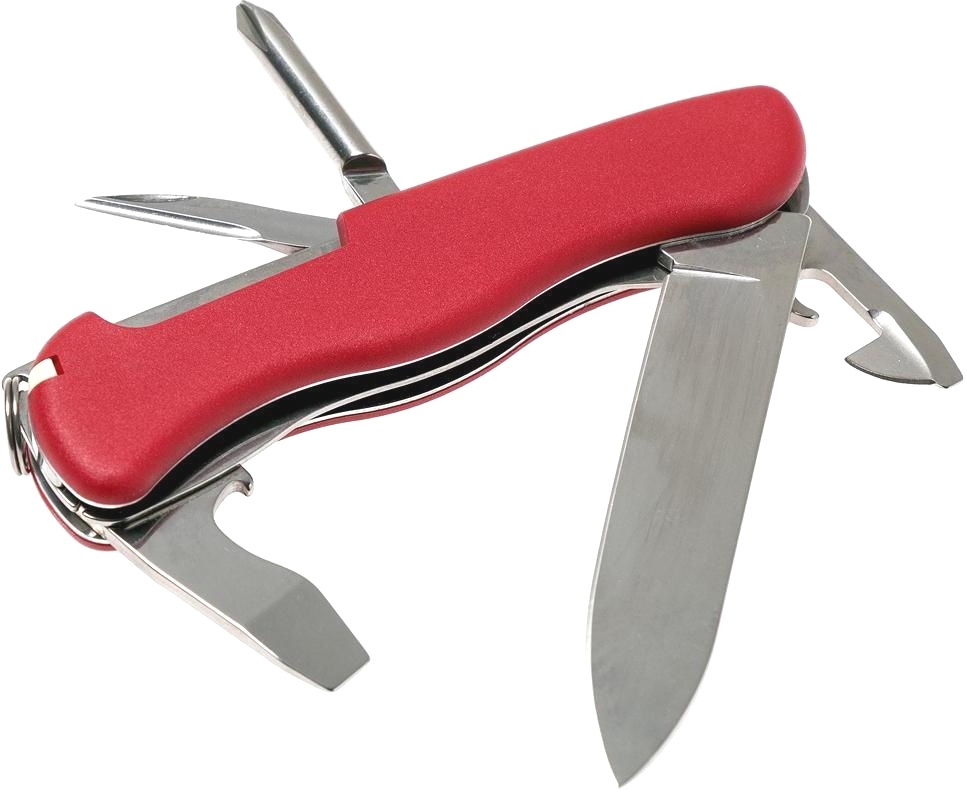 Повесьте этот брелок на связку ключей, и вы всегда будете иметь под рукой высококачественный практичный девайс. Складной перочинный ножик от старейшего европейского бренда содержит 11 функциональных инструментов. В их числе несколько различных отверток и открывалок, консервный нож, пинцет и проч. Аксессуар снабжен крупным лезвием из прочнейшей закаленной стали. Изготовитель предусмотрел опцию фиксации Liner lock, гарантирующую удобство и безопасность при использовании. Красно-белое цветовое оформление рукояти напоминает флаг Швейцарии, родины фирмы-производителя.