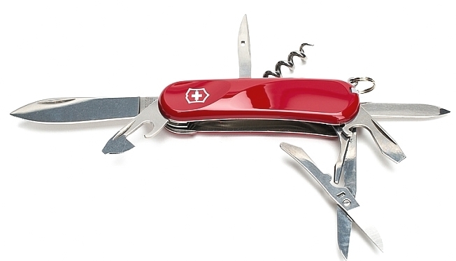 Стоящим подарком мужчине любого возраста станет хороший армейский складной нож, многофункциональный и надежный. Модель Victorinox Evolution S14 советуем купить заядлому туристу: любителю походов, вылазок на природу, диких путешествий с компасом и рюкзаком. В красной пластиковой эргономичной рукояти ножа сокрыто целых 14 функций, которые помогут решить различные проблемы, неизбежные во время турпохода. Все инструменты выполнены из качественной, прочной стали.