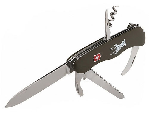 Швейцарский солдатский нож Victorinox Hunter с фиксатором лезвия содержит 13 элементов, которые могут выполнить 20 функций. В состав инструмента входят зубочистка, штопор, пила, открывалка, отвертка, пинцет и, конечно, функциональный клинок. Купить такой подарок вы сможете любому ценителю холодного оружия или просто человеку, которому порой необходимо действовать в непредвиденных ситуациях. Надежность изделия подтверждается пожизненной гарантией, которую производитель предоставляет на все свои клинки.