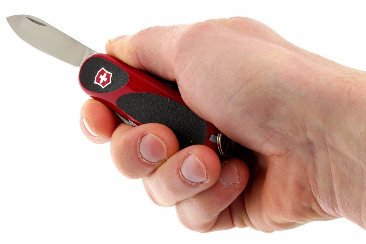 На швейцарский нож Victorinox EvoGrip стоит обратить внимание, если вы хотите купить компактный, но при этом удобно лежащий в руке многофункциональный нож. Его рукоятка эргономичной формы сделана из нескользящего пластика, что позволяет без труда резать или проводить мелкий ремонт при помощи одного из инструментов в составе этого ножа – лезвия, отвертки, шила, ножниц и т. п.