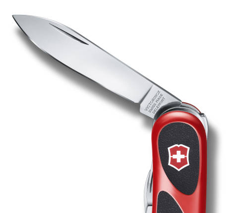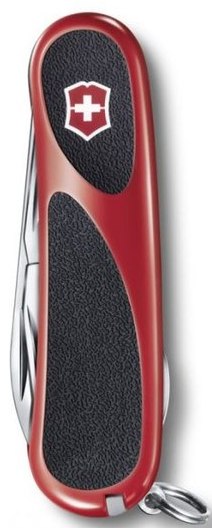 Швейцарский нож Victorinox EvoGrip отличается от других моделей легендарной марки профилированной рукояткой с наличием вставок из адгезионного материала (благодаря которым нож не скользит даже во влажных руках).  В состав универсального складного ножа входят, помимо лезвия, пилка, отвертки прямая и крестовая, открывалки для банок и бутылок, а также шило, пинцет, зубочистка и паз для снятия изоляции.