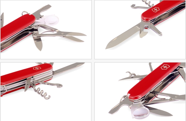 Victorinox Explorer назван так не случайно – в его составе есть все, что нужно для исследований, а также для мелкого ремонта, отдыха и личной гигиены. Основная «фишка» – лупа с восьмикратным увеличением. Помимо нее, в составе данного ножа – большое и малое лезвие, открывалки, скомбинированные с отвертками, шило, пинцет, зубочистка, универсальный крюк, штопор, крестовая отвертка и ножницы. И все это при помощи кольца можно подвесить на связку ключей – или куда угодно. Вес ножа – чуть больше 100 граммов.