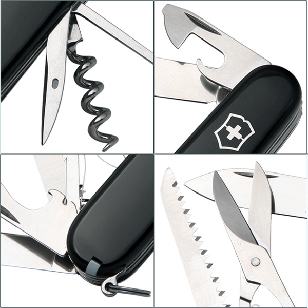 Швейцарский перочинный нож Victorinox Huntsman длиной всего 91 миллиметр можно купить не только для охоты, но и для повседневной жизни в городских джунглях, где то и дело пригождаются то лезвия различной длины, то отвертки, то штопор или открывалка для бутылок, а то и пила по дереву. Нож заключен в классический черный пластиковый корпус с логотипом бренда.