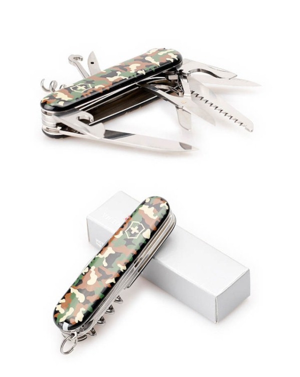 Швейцарский перочинный нож Victorinox Huntsman можно купить в качестве недорогого, и при этом гарантированно полезного презента мужчине, у которого все есть. Складной нож станет удачным дополнением к домашнему набору инструментов и пригодится вне дома – в офисе, в дороге, на природе, в туристической поездке. Изюминка этой модели – камуфляжная рукоять.