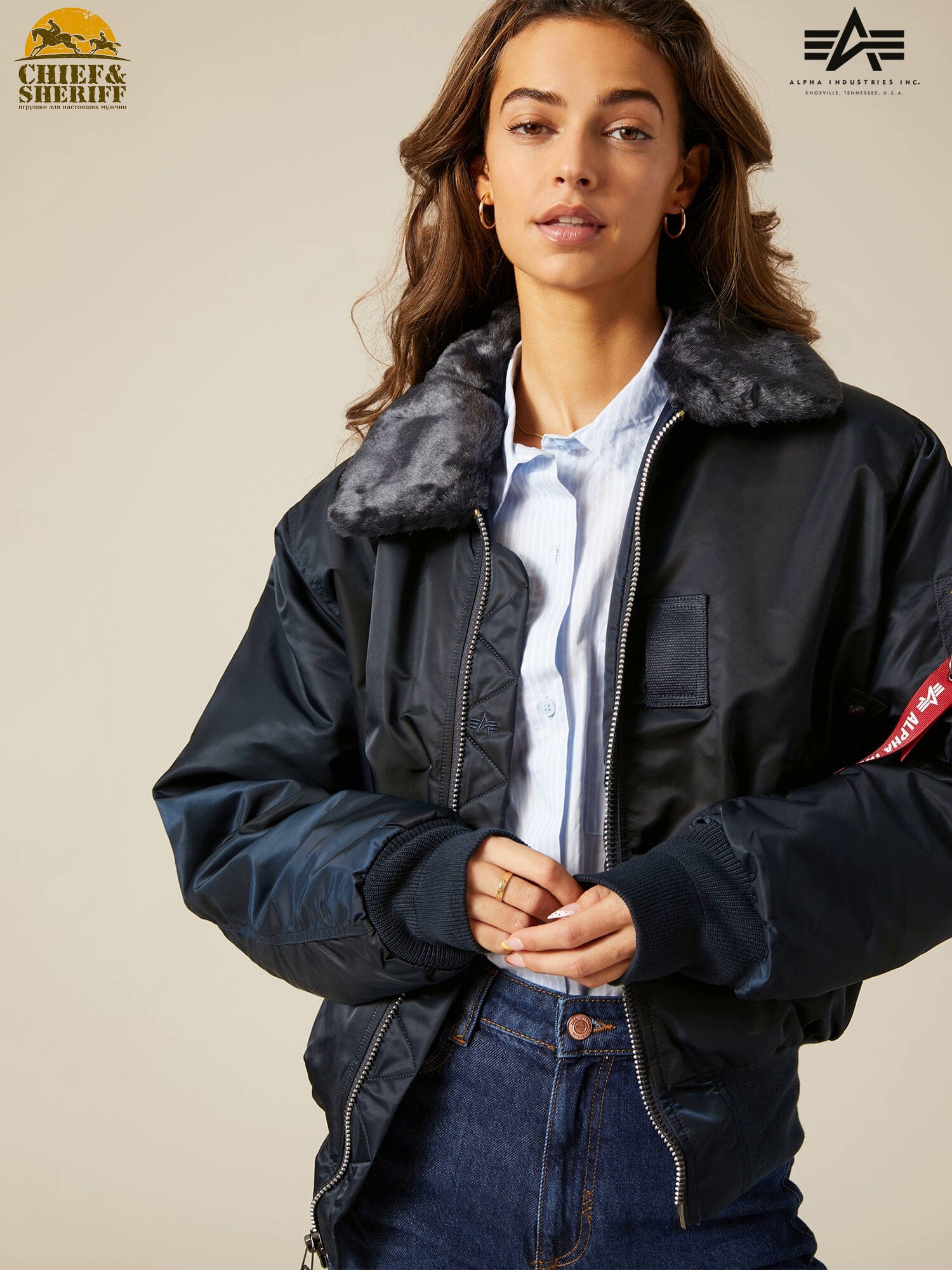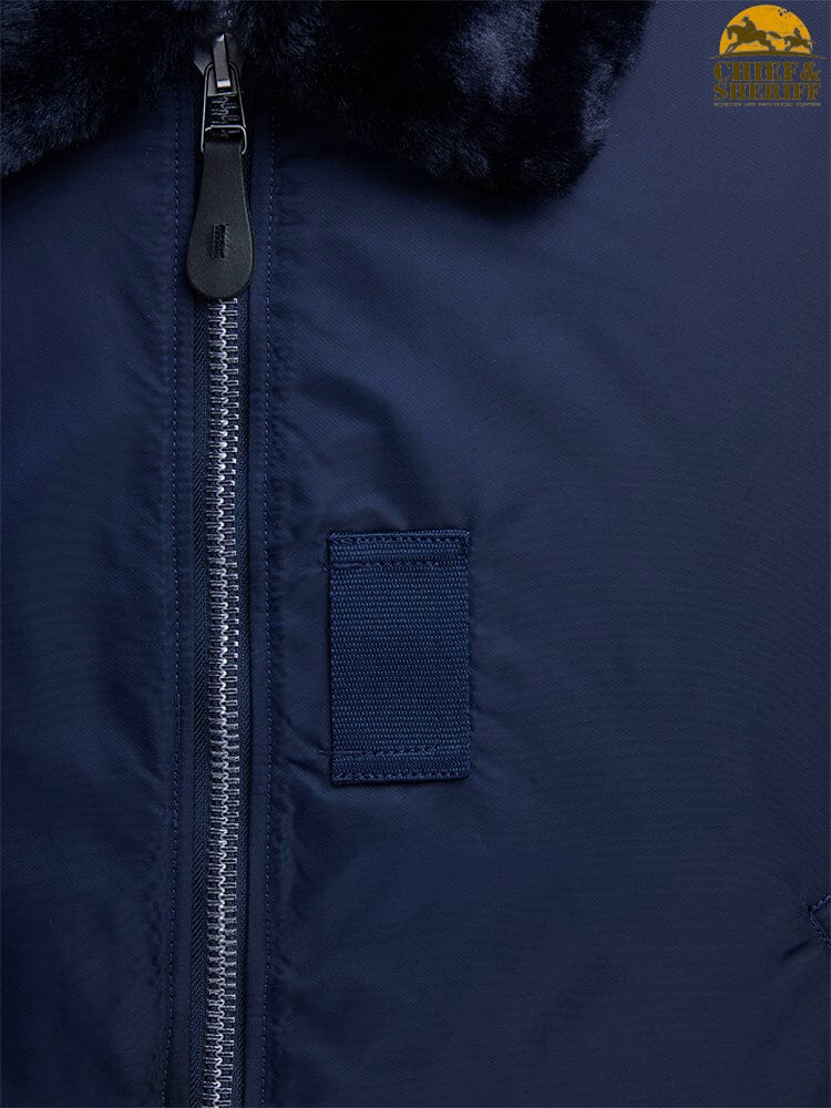 Куртка Alpha Industries B-15 насыщенного темно-синего цвета станет верной спутницей своего обладателя: ее можно купить на межсезонье или на умеренно прохладную зиму. Изюминка этой модели – съемный воротник из искусственного меха, который придает ей стильный внешний вид и дополнительно защищает от холода. Также куртка снабжена трикотажным поясом и манжетами (плотно прилегающими к телу и не позволяющими воздуху задувать под одежду), прорезными карманами с кнопками по бокам и небольшим кармашком на рукаве.