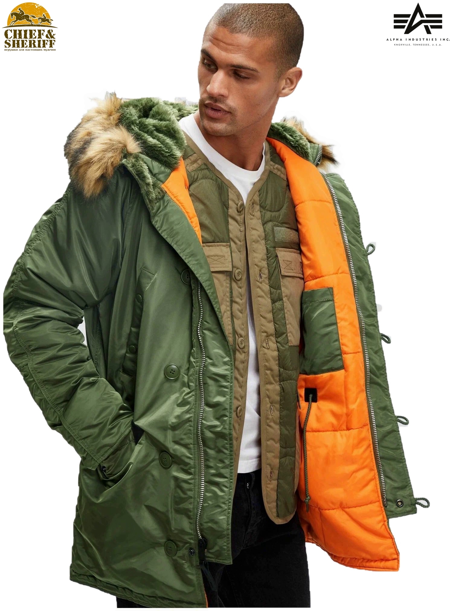 Отзывы — Куртка аляска Alpha Industries Slim Fit N-3B Parka, sage-orange