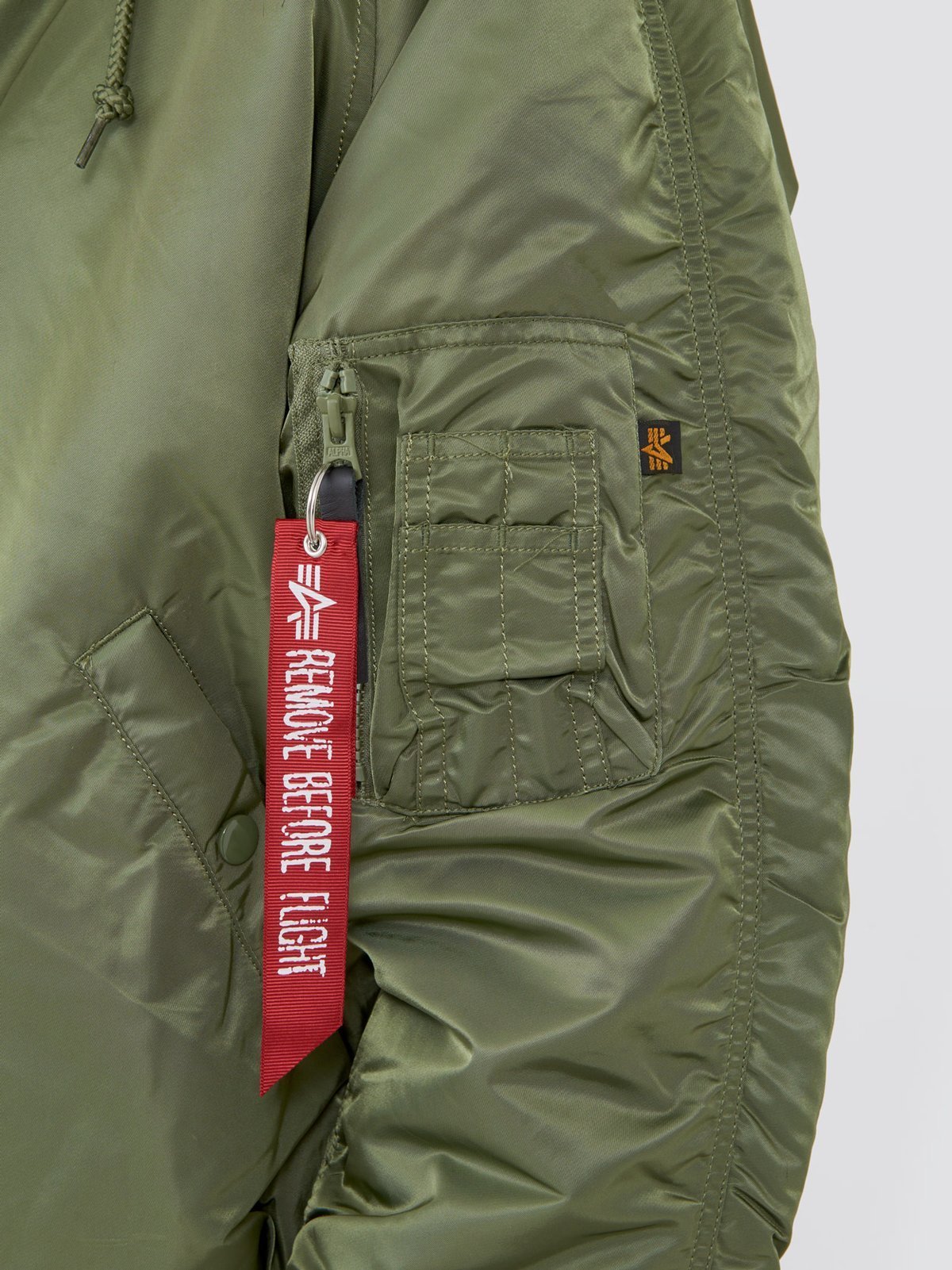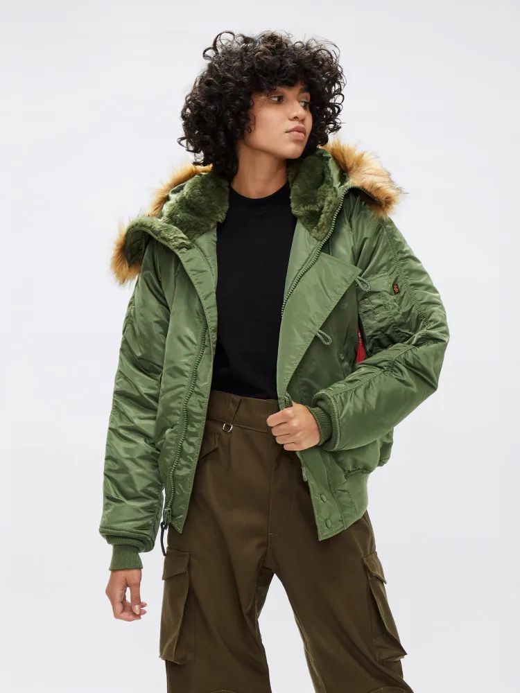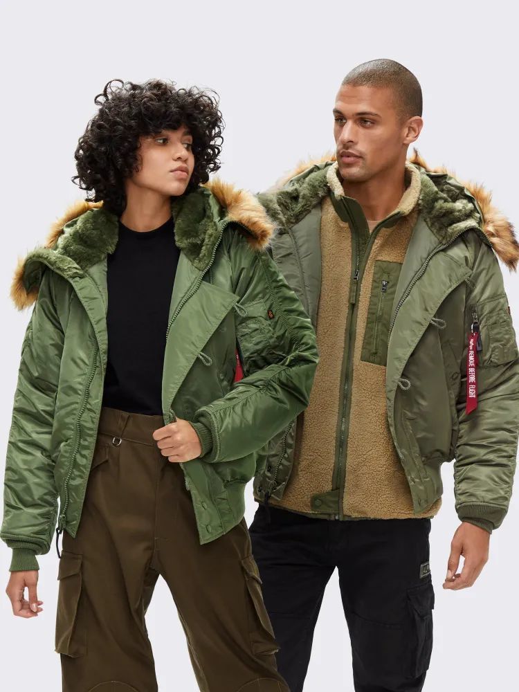 Куртка аляска Alpha Industries N-2B разработана специально для летчиков  армии США, но купить ее может каждый. Укороченный покрой не стесняет движений, а трикотажный пояс и манжеты на рукавах защищают тело от задувания холодного ветра. Пластиковая молния с крупными зубцами закрыта клапанами, что также позволяет сохранять дополнительное тепло. Капюшон с отделкой искусственным мехом тоже на молнии, а изначально такая молния была сделана для того, чтобы она не мешала пилоту в кокпите самолета. Особенность куртки  – два прорезных, сквозных кармана, которые изначально задумывались для того, чтобы пилот мог не расстегивая куртки, достать что-то из кармана летного комбинезона. На рукаве – кармашек для мелочей, сигарет, c брелоком. Особенность куртки — слегка присборенный усиленный шов на рукаве, который называется «пакаринг». Он обеспечивает легкость движений и предупреждает повреждение материала даже при очень высоком уровне активности обладателя куртки.