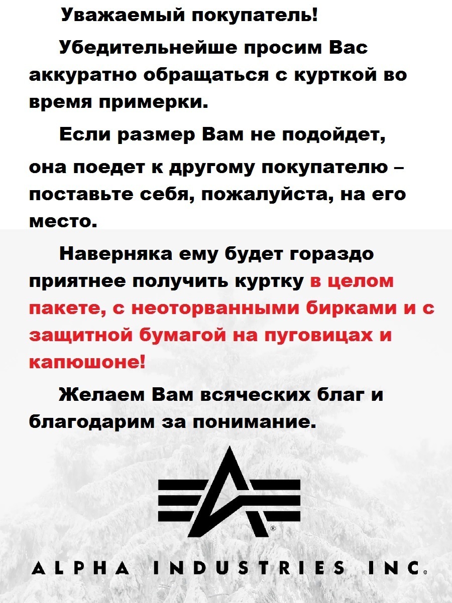 На куртке имеется маркировка "Честный знак". Компания Chief&Sheriff - официальный представитель Alpha Industries уже более 10 лет.