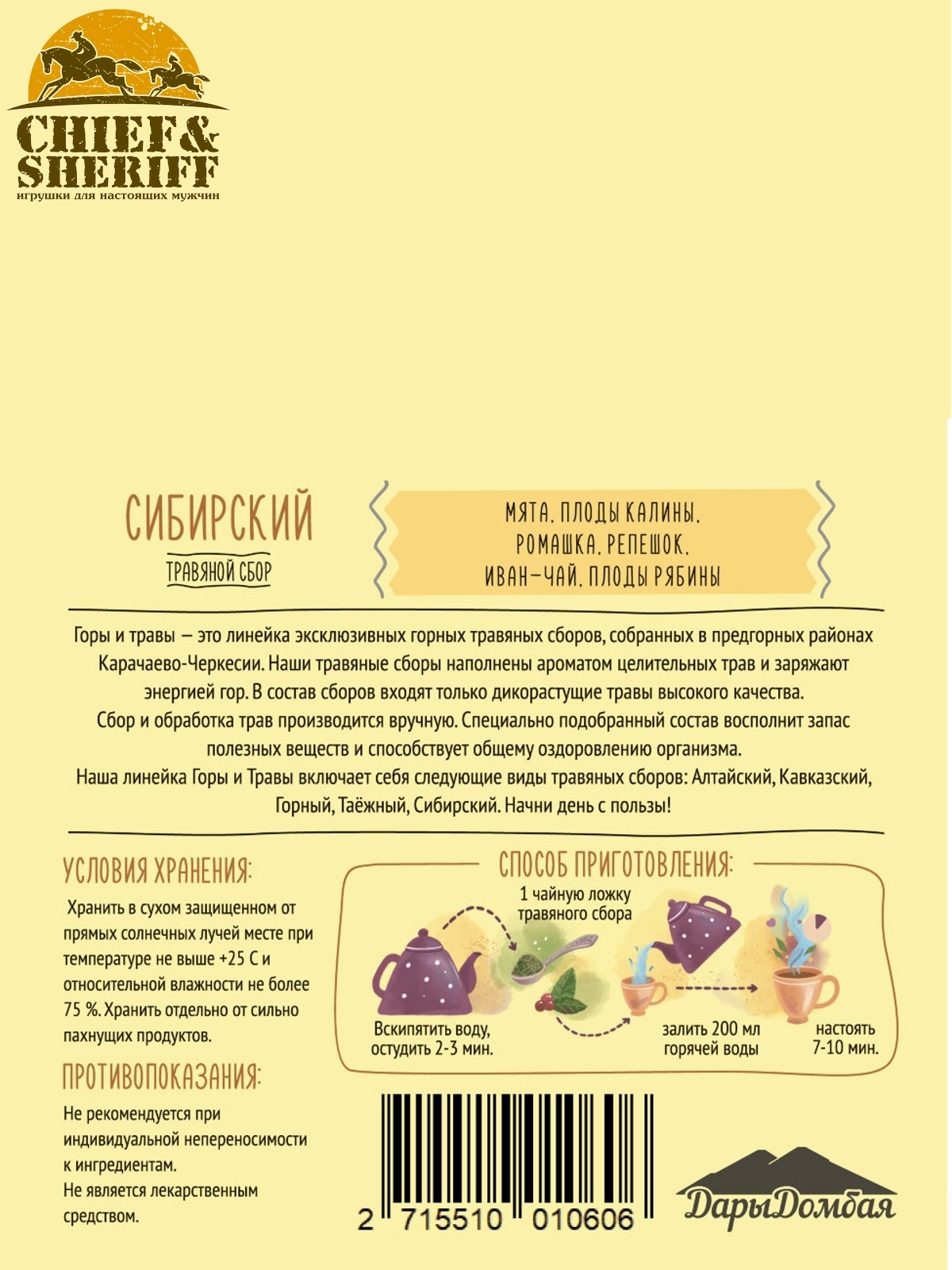 Травяной чай "Сибирский", Дары Домбая, 2 X 80 гр