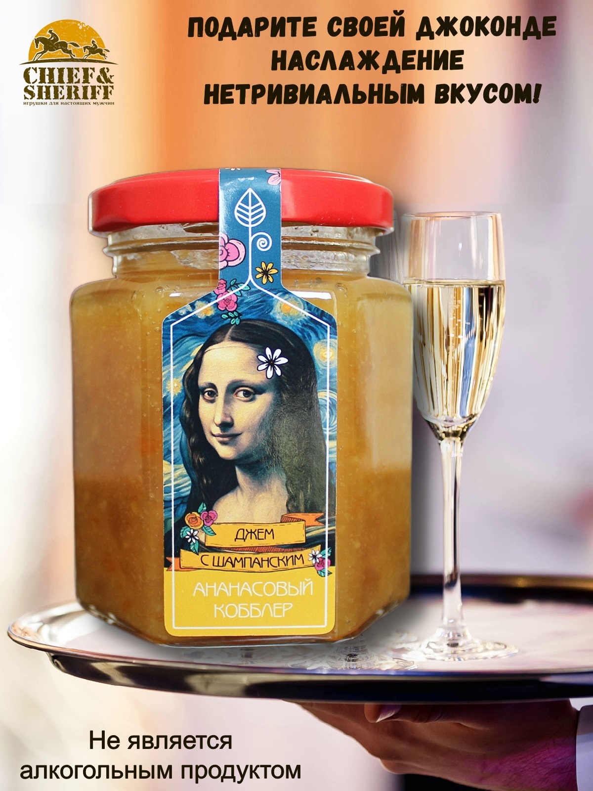 В остром обществе дамском ананасы в шампанском! — воспетое более 100 лет назад поэтом Игорем Северяниным эксцентрическое соединение прежде несовместимого, предел мечтаний и богемных грёз! Десерт для особых случаев! Лимитированная партия джема, сделанная специально к 8 марта и Дню влюбленных.