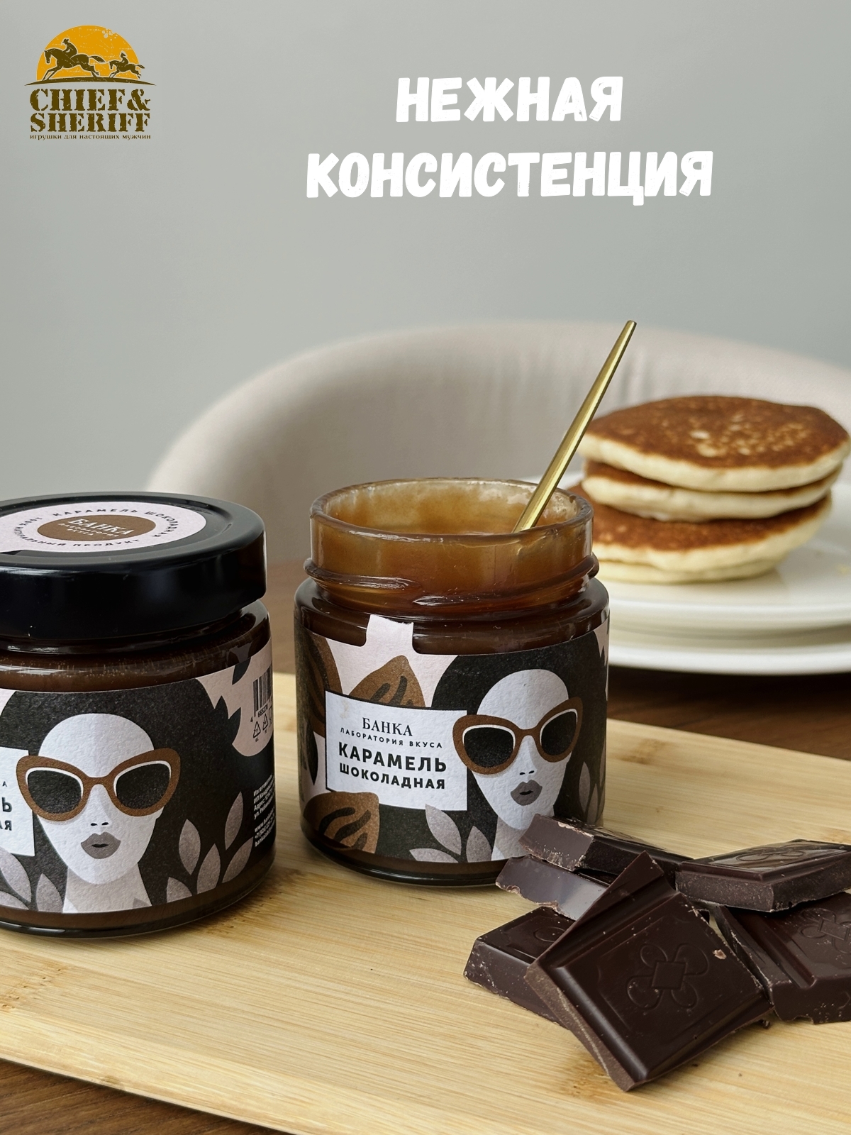 Шоколадная карамель от отечественного бренда Банка. Лаборатория вкуса — оригинальная сладость с консистенцией густого крема, которая обладает бежевым оттенком и вкусом шоколада. Десерт предназначен для намазывания на тосты, блинчики, кексы и другую выпечку, также кондитеры используют его для прослаивания бисквитов. Карамель с натуральным составом можно употреблять и в чистом виде — в дополнение к чаю и кофе. Свежесть продукта обеспечивает герметичная упаковка — небольшая баночка из стекла с отвинчивающейся крышкой.