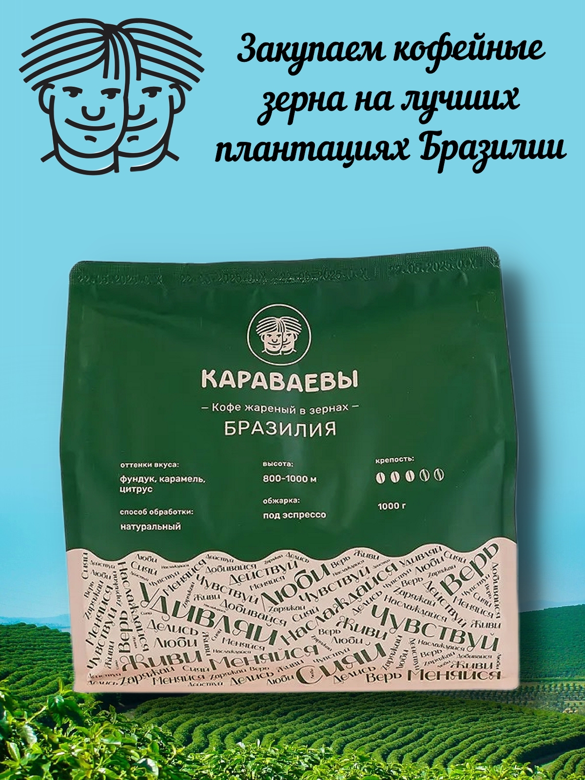 Кофе в зернах, Бразилия (Арабика 100%) Гурманика, Братья Караваевы, 1000 гр