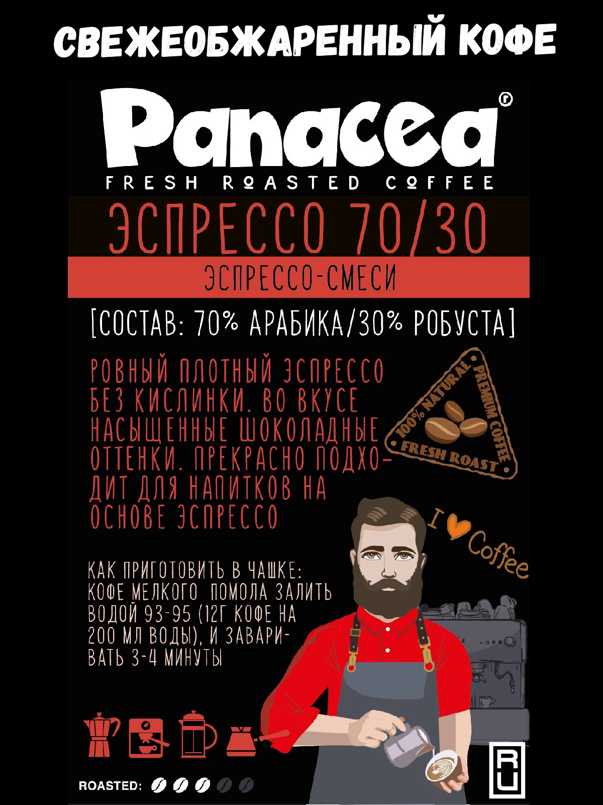 Кофе в зернах Эспрессо70/30 (70% Арабики,30% Робусты), Panacea-coffee, 250 гр