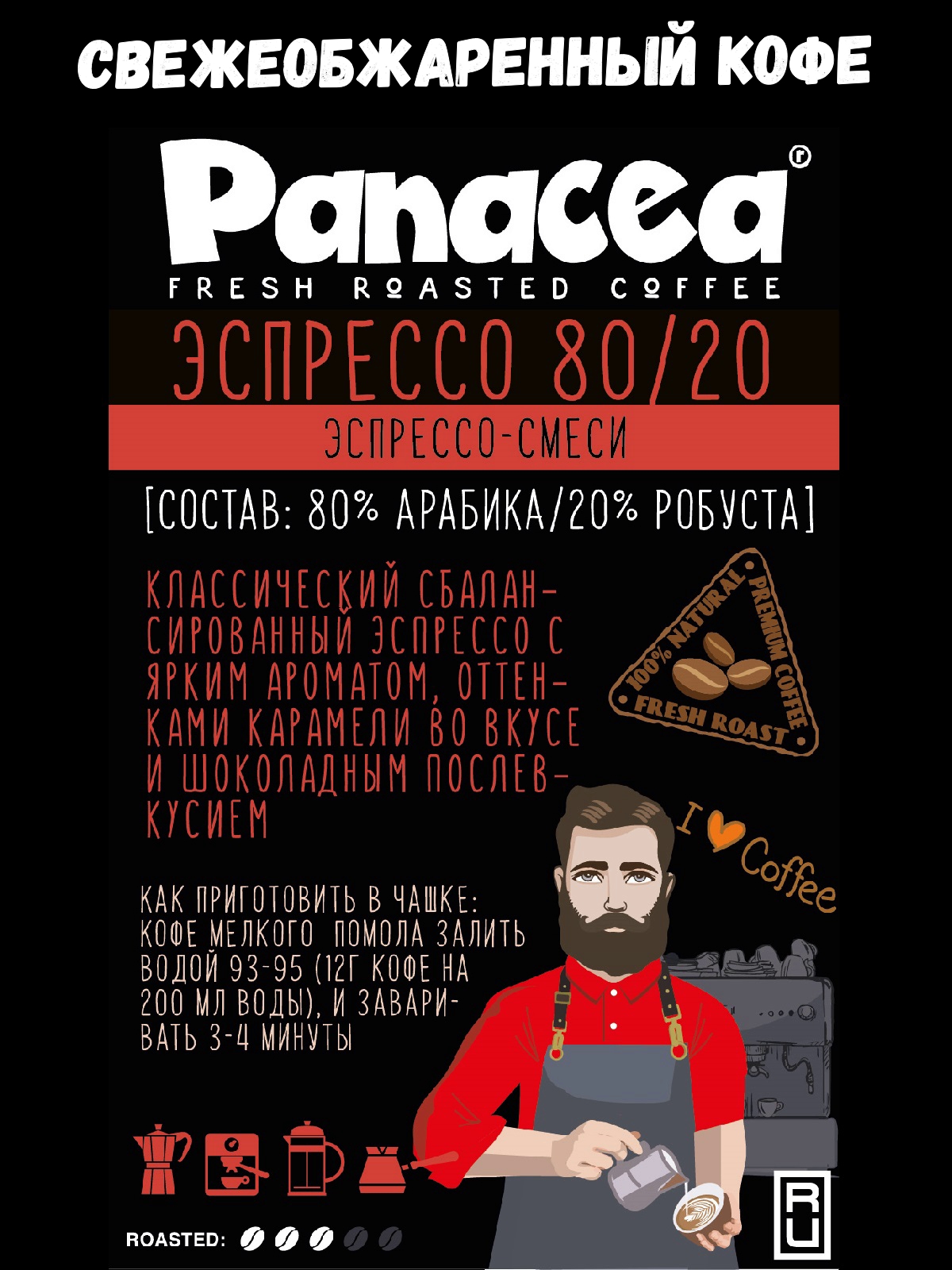 Кофе в зернах Эспрессо80/20 (80% Арабики,20% Робусты), Panacea-coffee, 250 гр