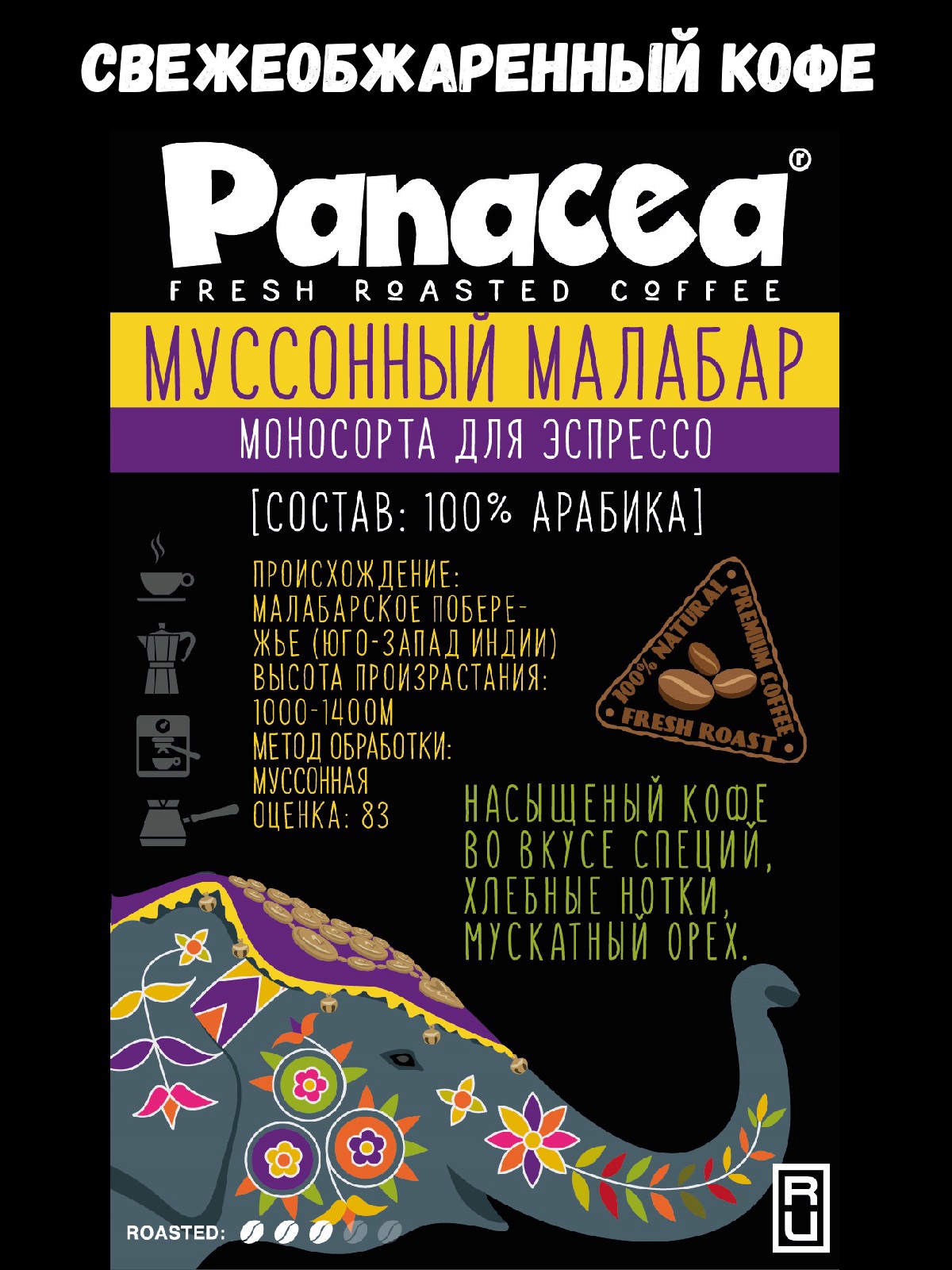 Кофе в зернах Индия Муссоный Малабар (100% арабика), Panacea-coffee, 250 гр