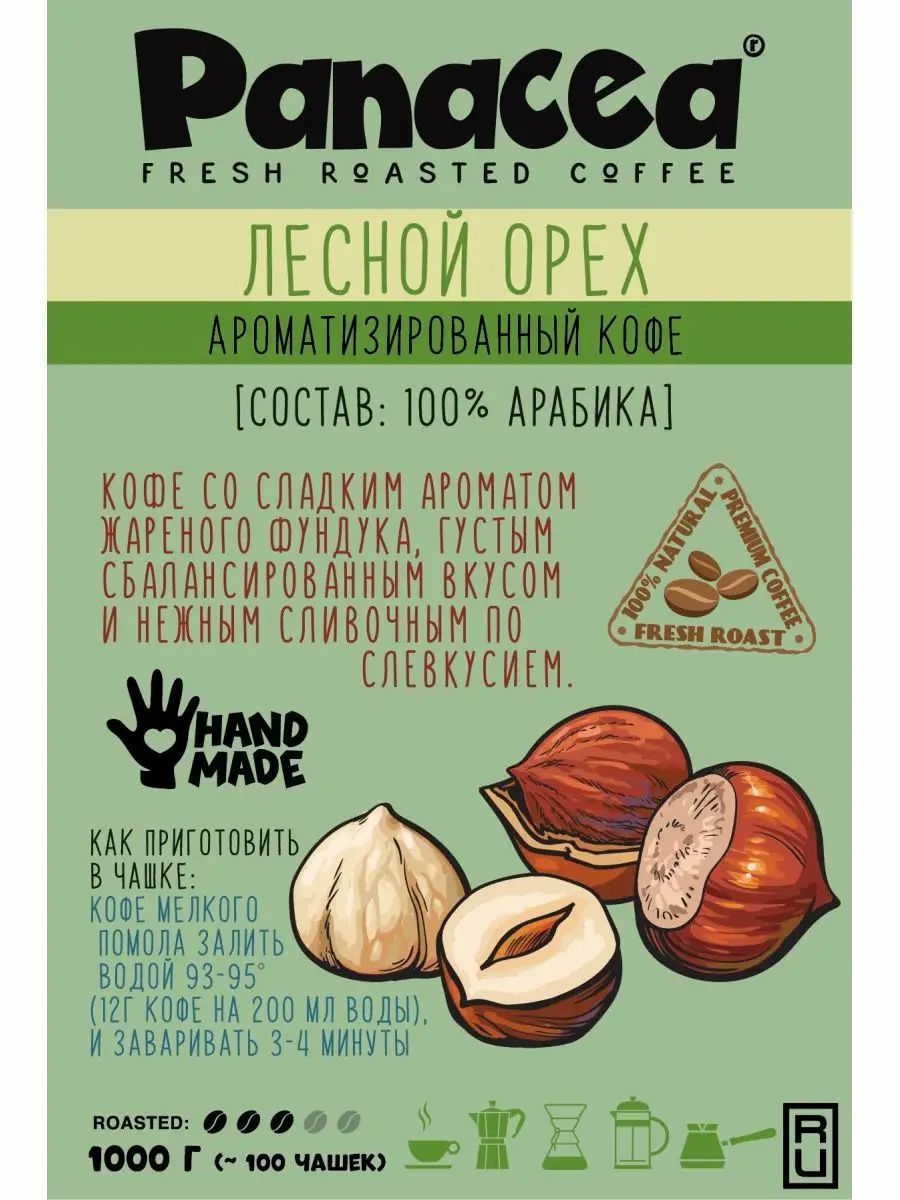 Кофе в зернах Лесной орех (100% арабика), Panacea-coffee, 1 кг