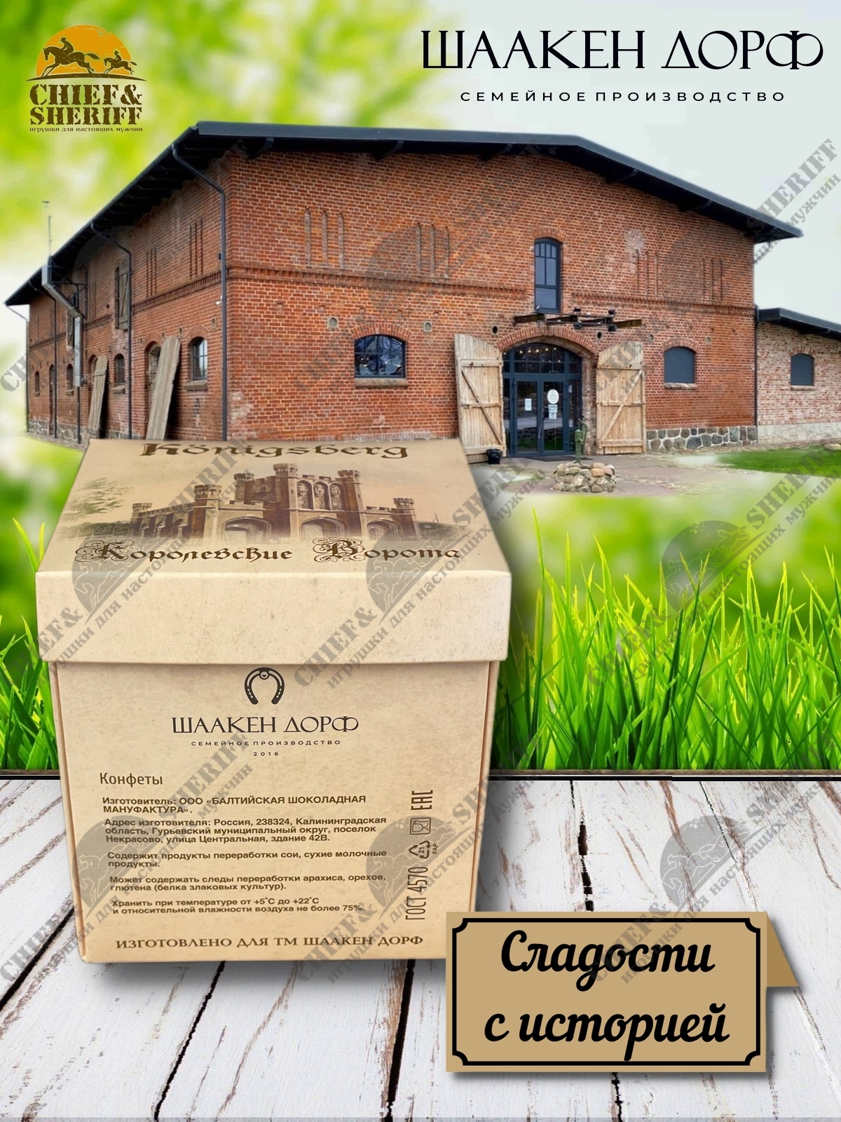 Шаакен Дорф - семейное производство сыра, марципана, шоколада, конфет и зефира. Производство компании Шаакен Дорф находится в Калининграде, в здании, которое когда-то было конюшней при замке Шаакен - рыцарей еще тевтонского ордена. Сейчас на первом этаже находится производство сыра. На втором этаже располагается небольшое кондитерское производство. Здесь вручную варится зефир, делаются карамелизированные апельсины в темном шоколаде, сублимированные ягоды, а также создается абсолютно разный и такой всеми полюбившийся калининградский марципан. В 2024 году, компания Шаакен Дорф стала победителем в номинациях «Лучшее туристическое направление года в номинации агротуризм», «Лучшее крестьянско-фермерское хозяйство», «Лучшее хозяйство в отрасли переработки молока», «Лучший объект туристического показа» и многих других!