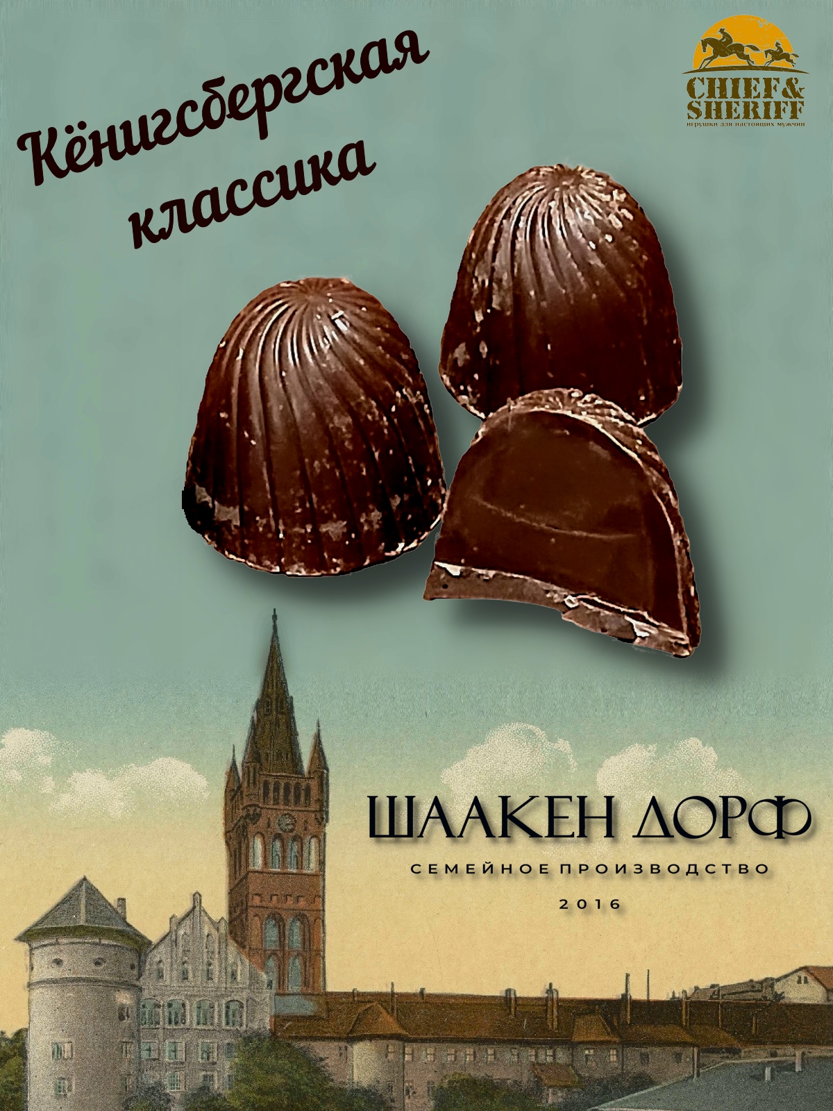 Конфеты Konigsberg с шоколадной начинкой – это истинное наслаждение для сладкоежек и поклонников изысканного вкуса. Каждая конфета обладает уникальным сочетанием нежности и хрусткости, упакована индивидуально и в симпатичную коробочку с видами старого Кёнигсберга весом 110 граммов.