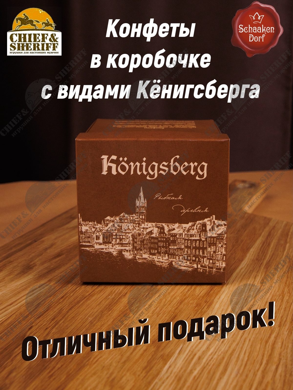 Конфеты Konigsberg с начинкой грецкий орех – это истинное наслаждение для сладкоежек и поклонников изысканного вкуса. Каждая конфета обладает уникальным сочетанием нежности и хрусткости, упакована индивидуально и в симпатичную коробочку с видами старого Кёнигсберга весом 200 граммов. Внутри вы найдете конфеты с начинкой грецкий орех, которая придаст сладостям неповторимый ореховый вкус и аромат. Эти конфеты идеально подойдут для любого повода: будь то угощение на празднике, подарок или просто сладкий перекус в течение дня.