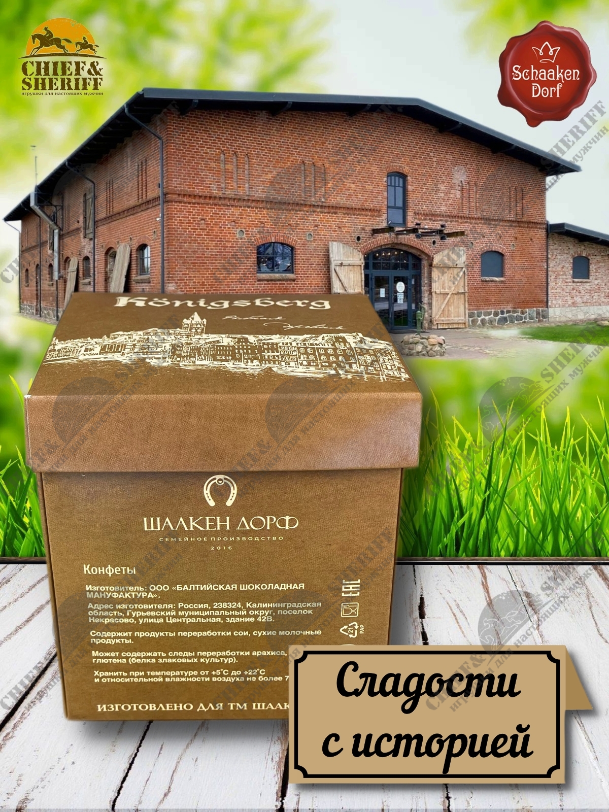 Шаакен Дорф - семейное производство сыра, марципана, шоколада, конфет и зефира. Производство компании Шаакен Дорф находится в Калининграде, в здании, которое когда-то было конюшней при замке Шаакен - рыцарей еще тевтонского ордена. Сейчас на первом этаже находится производство сыра. На втором этаже располагается небольшое кондитерское производство. Здесь вручную варится зефир, делаются карамелизированные апельсины в темном шоколаде, сублимированные ягоды, а также создается абсолютно разный и такой всеми полюбившийся калининградский марципан. В 2024 году, компания Шаакен Дорф стала победителем в номинациях «Лучшее туристическое направление года в номинации агротуризм», «Лучшее крестьянско-фермерское хозяйство», «Лучшее хозяйство в отрасли переработки молока», «Лучший объект туристического показа» и многих других!