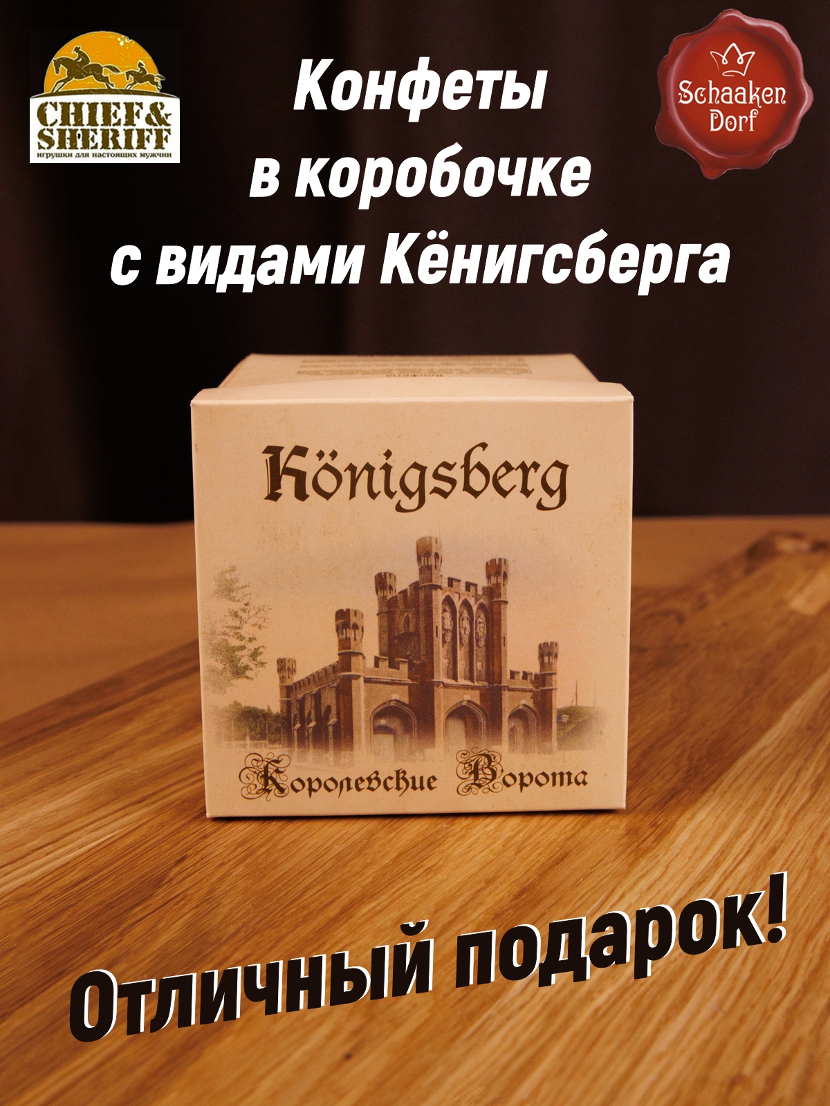 Конфеты Konigsberg с начинкой из лесного ореха – это истинное наслаждение для сладкоежек и поклонников изысканного вкуса. Каждая конфета обладает уникальным сочетанием нежности и хрусткости, упакована индивидуально и в симпатичную коробочку с видами старого Кёнигсберга весом 200 граммов.. Внутри вы найдете конфеты с начинкой из лесного ореха , которая придаст сладостям неповторимый ореховый вкус и аромат. Эти конфеты идеально подойдут для любого повода: будь то угощение на празднике, подарок или просто сладкий перекус в течение дня.