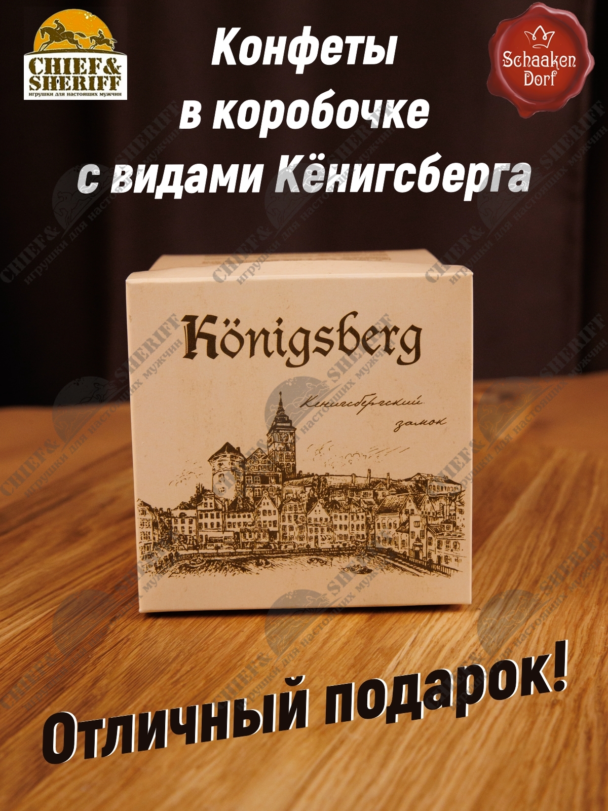 Конфеты Konigsberg с миндальной начинкой – это истинное наслаждение для сладкоежек и поклонников изысканного вкуса. Каждая конфета обладает уникальным сочетанием нежности и хрусткости, упакована индивидуально и в симпатичную коробочку с видами старого Кёнигсберга весом 200 граммов. Внутри вы найдете конфеты с миндалем, который придаст сладостям неповторимый ореховый вкус и аромат. Эти конфеты идеально подойдут для любого повода: будь то угощение на празднике, подарок или просто сладкий перекус в течение дня.