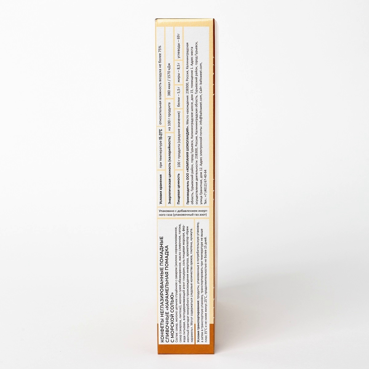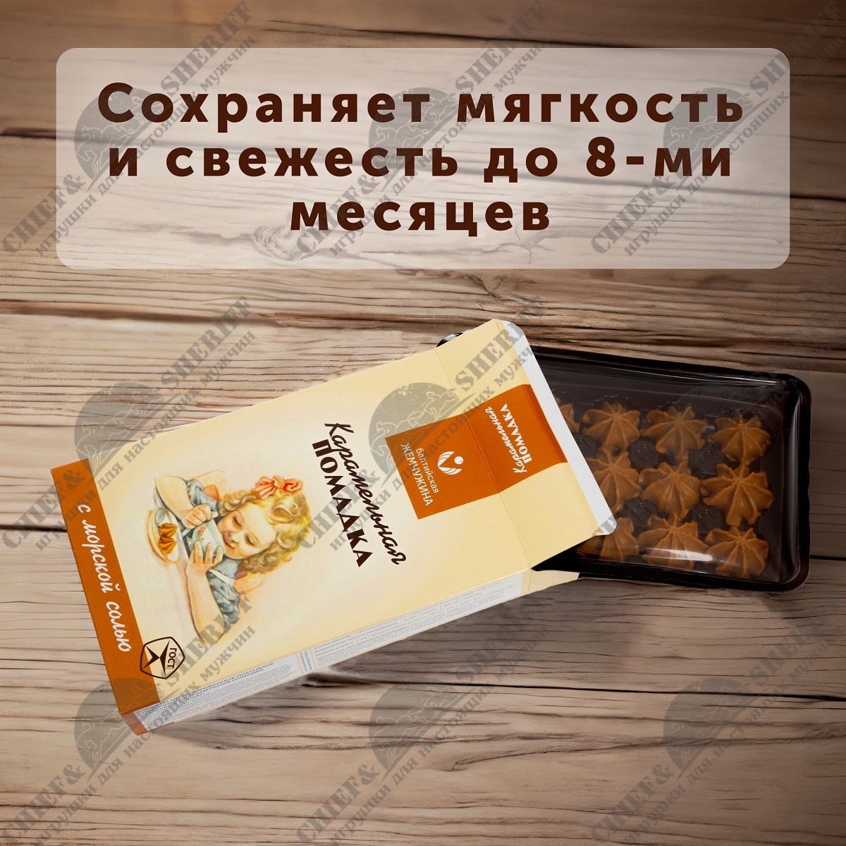 Конфеты отличаются нежной и гладкой текстурой, которая тает во рту, даря наслаждение с каждым кусочком. Карамельная помадка создана по традиционным рецептам, благодаря чему вы сможете окунуться в воспоминания о детстве и насладиться сладостью в каждой порции. Добавление морской соли подчеркивает вкус карамели, делая его более выраженным и сбалансированным.