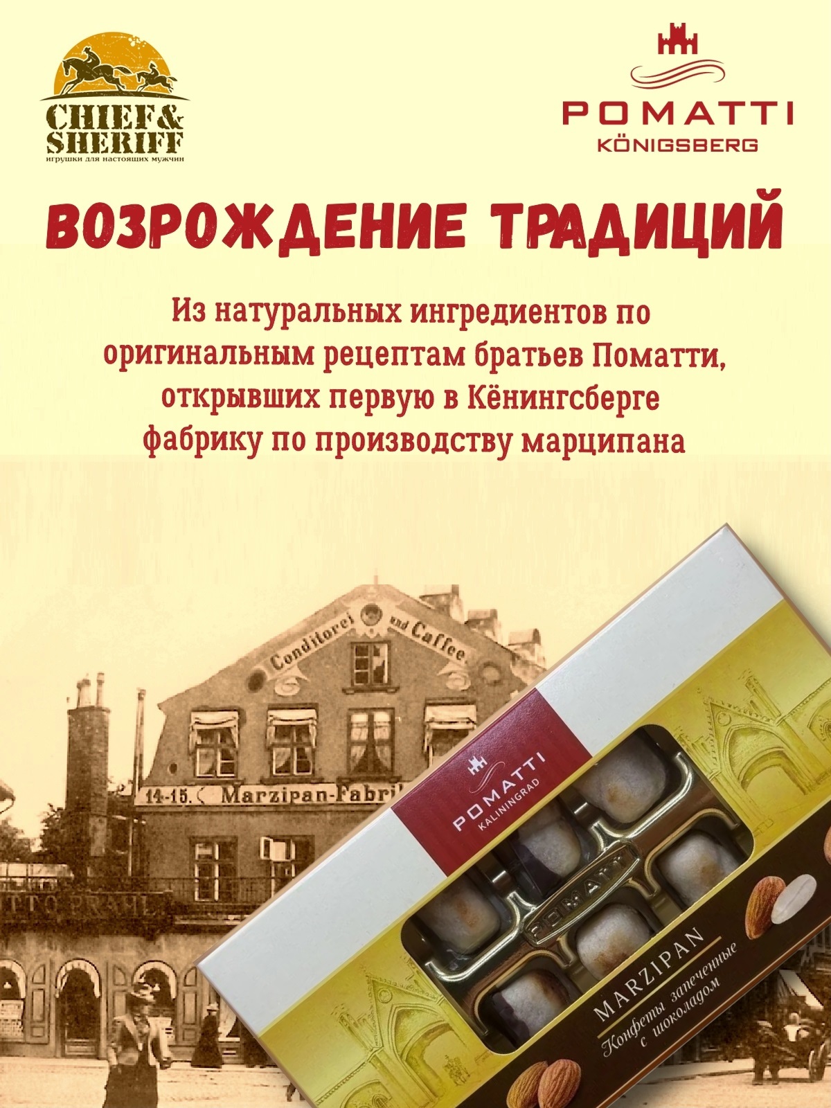 Конфеты марципановые глазированные "Кёнигсбергский стиль" от POMATTI – это не просто конфета, а настоящее гастрономическое произведение искусства, которое порадует ваш вкусовой буджет и станет отличным подарком для близких и друзей.