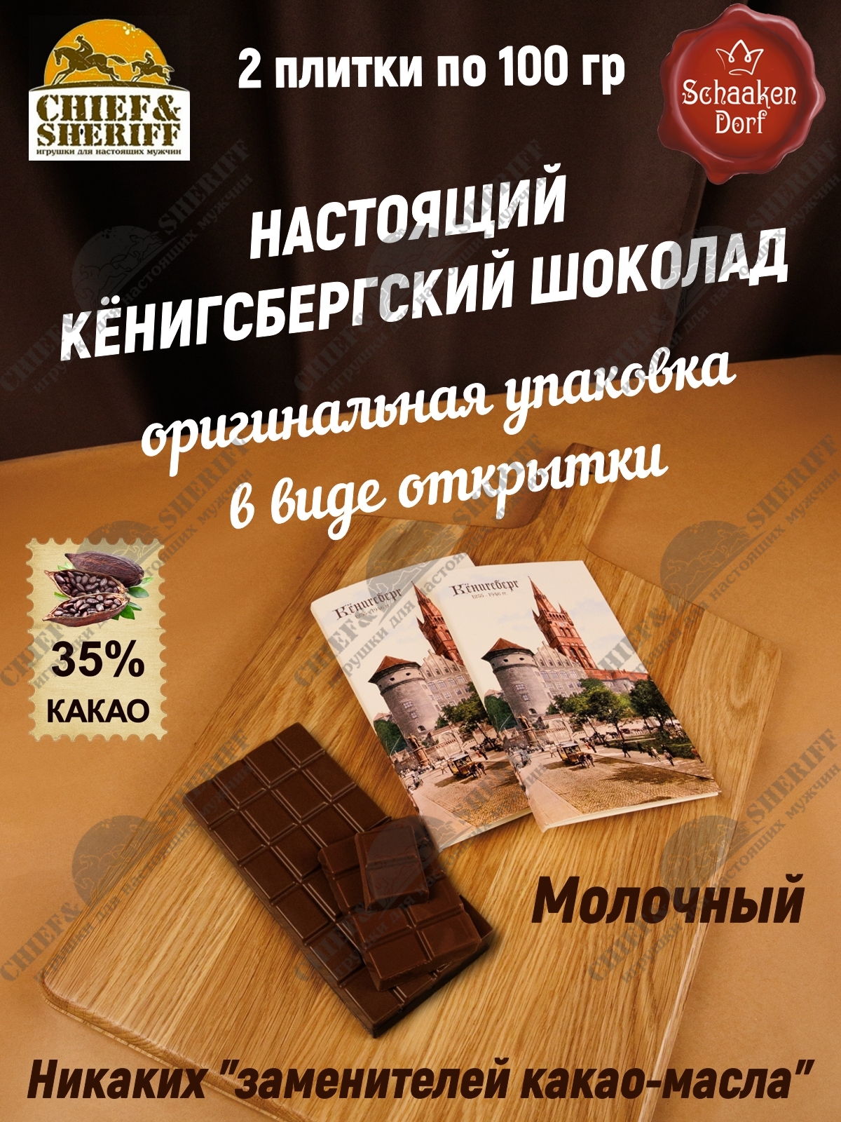 Шоколад молочный 35%, открытка "Alten Konigsberg", SCHAAKEN DORF, 2 X 100 гр Шоколад молочный 35%, открытка "Alten Konigsberg", SCHAAKEN DORF, 2 X 100 гр