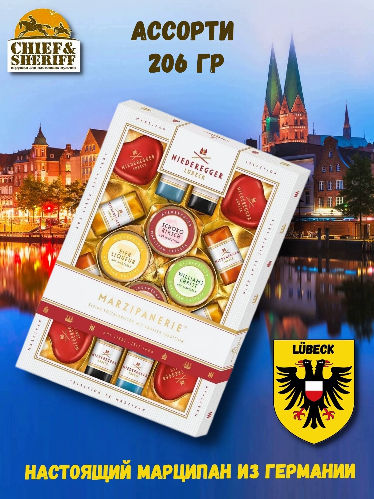 Особенности продукта Знаменитые конфеты из марципана от семьи Niederegger. Сделано в Германии.