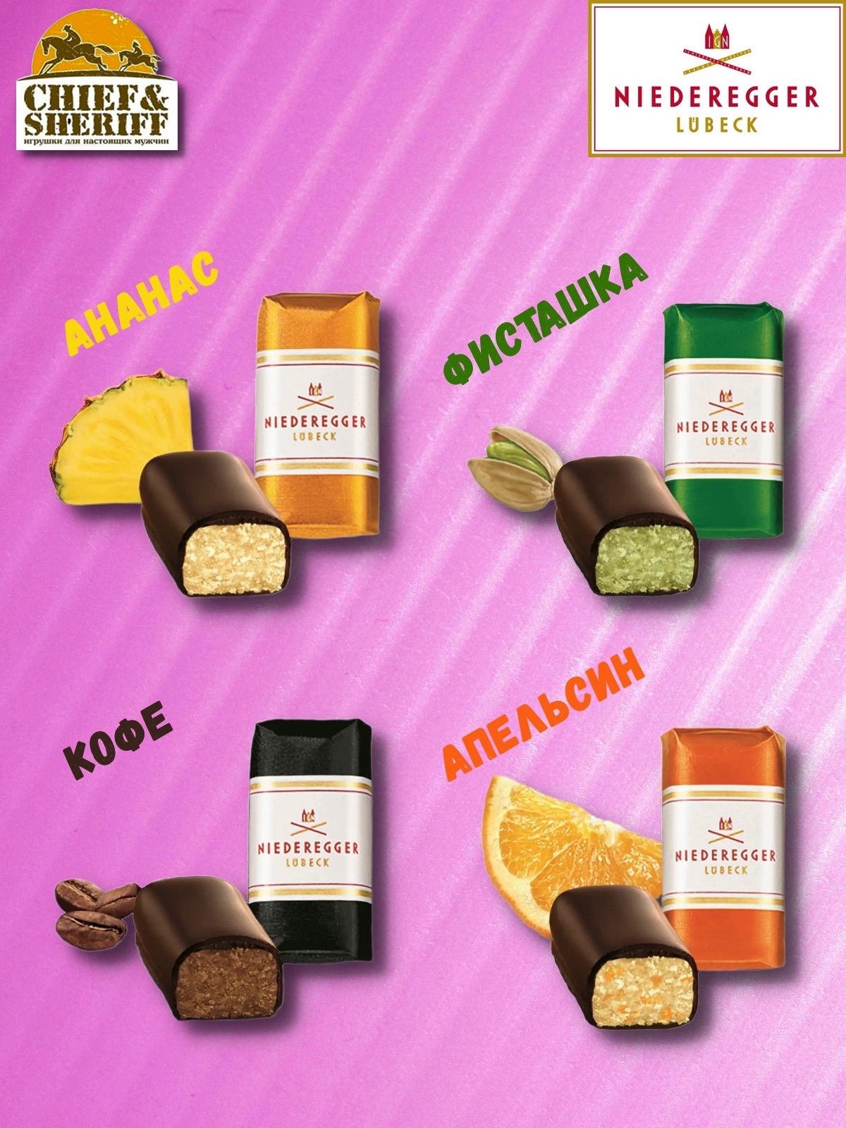 Особенности продукта Знаменитые конфеты из марципана от семьи Niederegger. Сделано в Германии.
