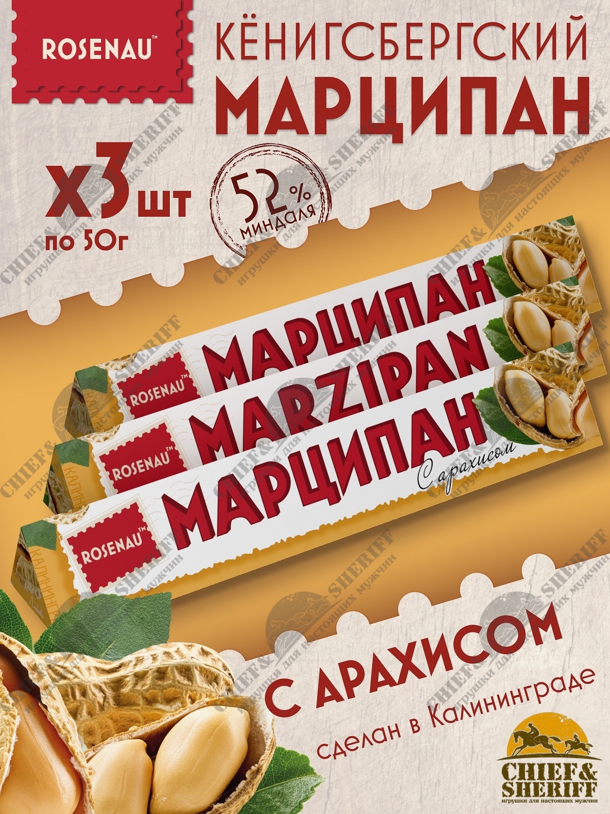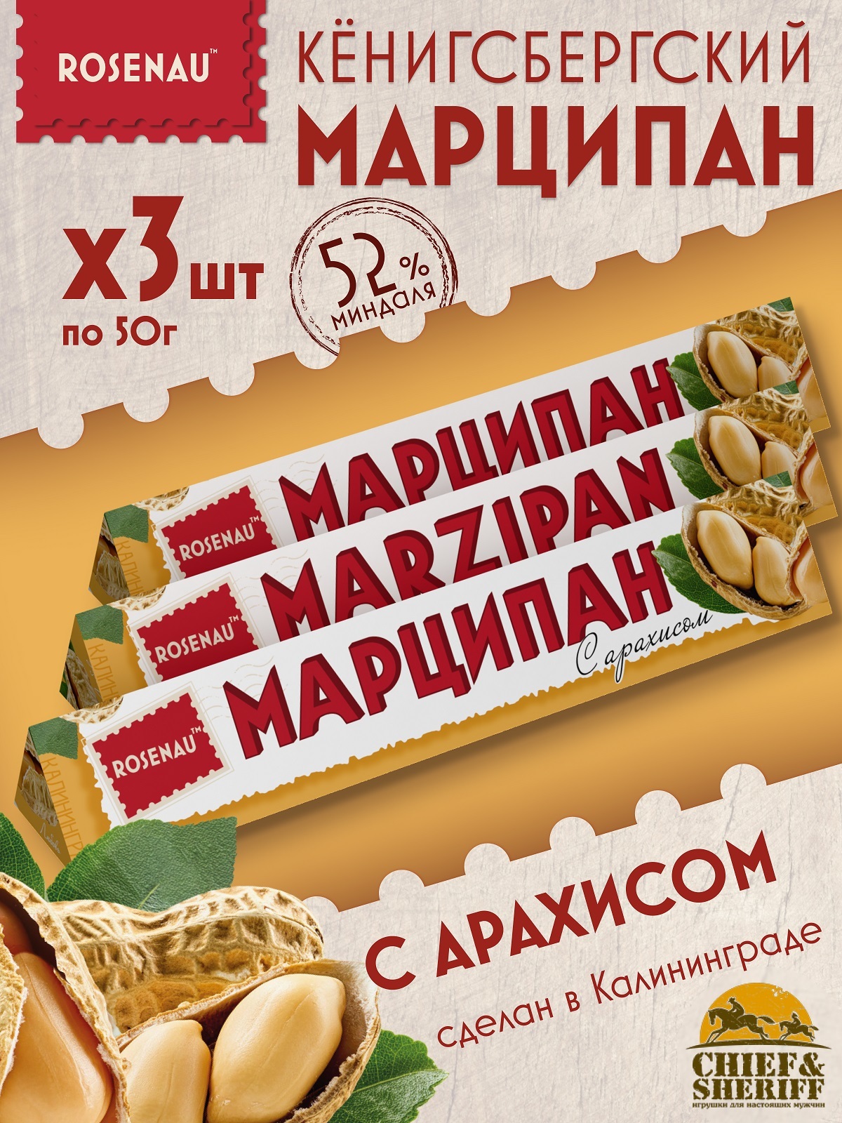 Марципан с арахисом (миндаль 52%), ROSENAU, 3 X 50 гр