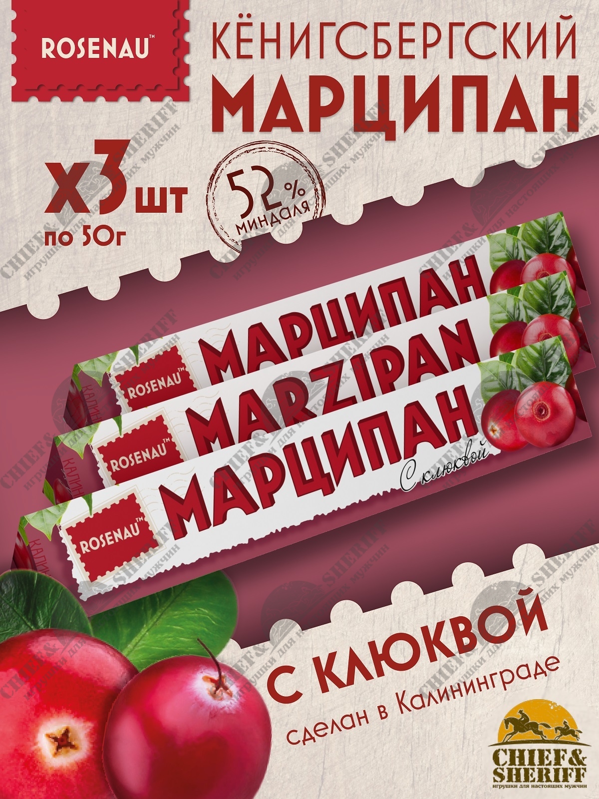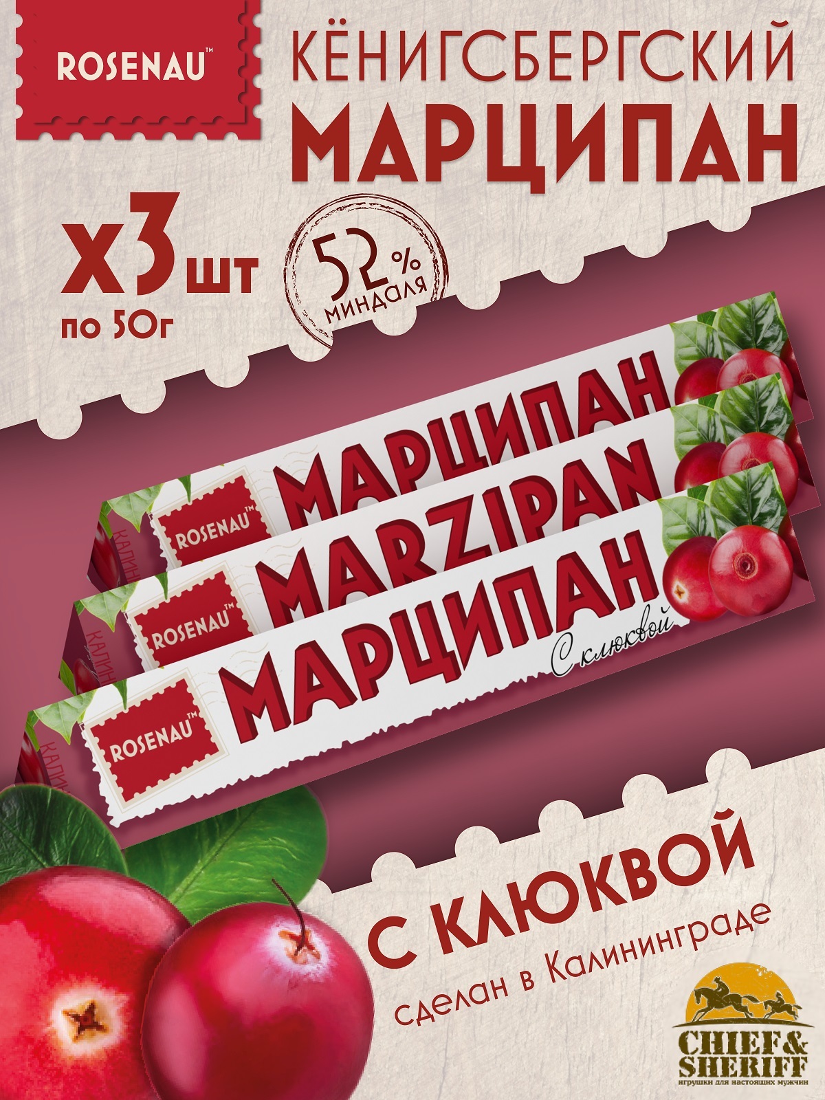 Марципан с клюквой (миндаль 52%), ROSENAU, 3 X 50 гр