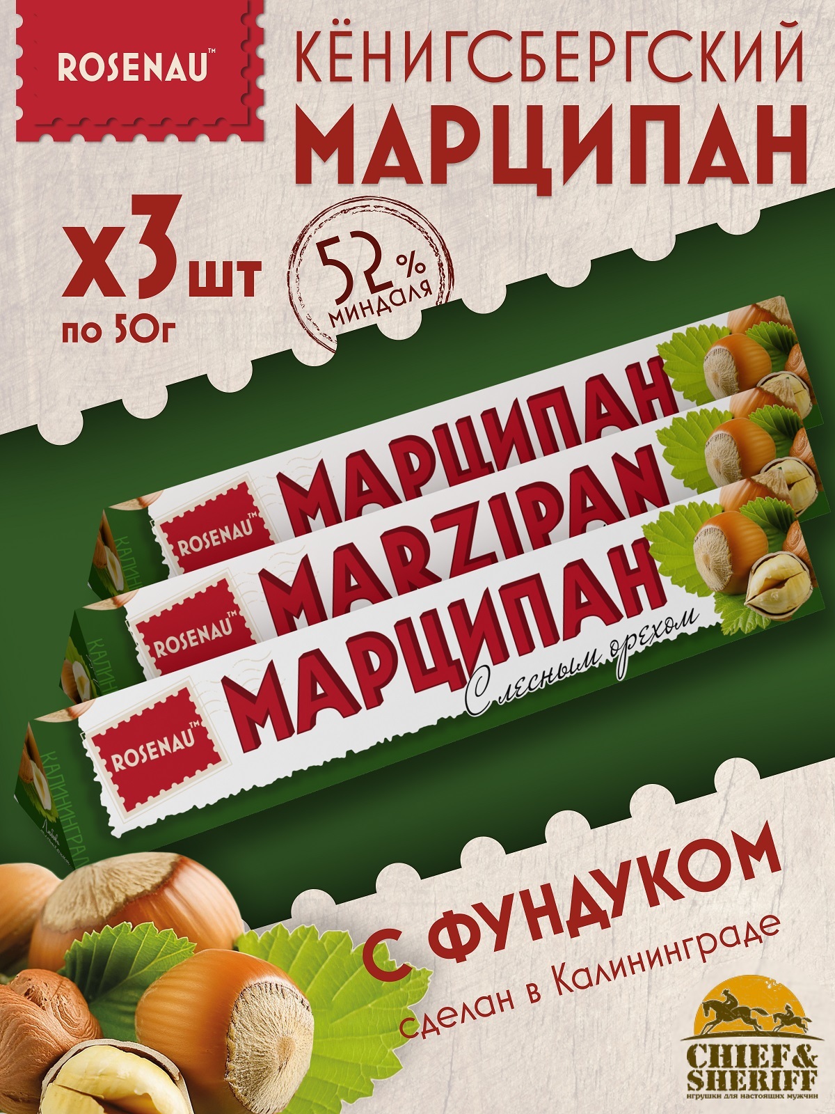 Марципан с лесным орехом (миндаль 52%), ROSENAU, 3 X 50 гр