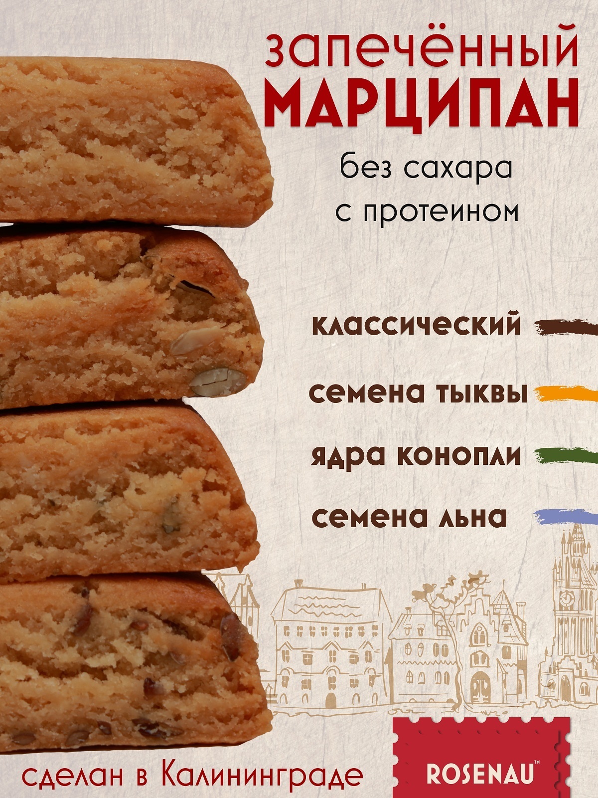 Отзывы — Марципан с семенами кунжута запеченный батончик без сахара, ROSENAU, 3 X 47 гр