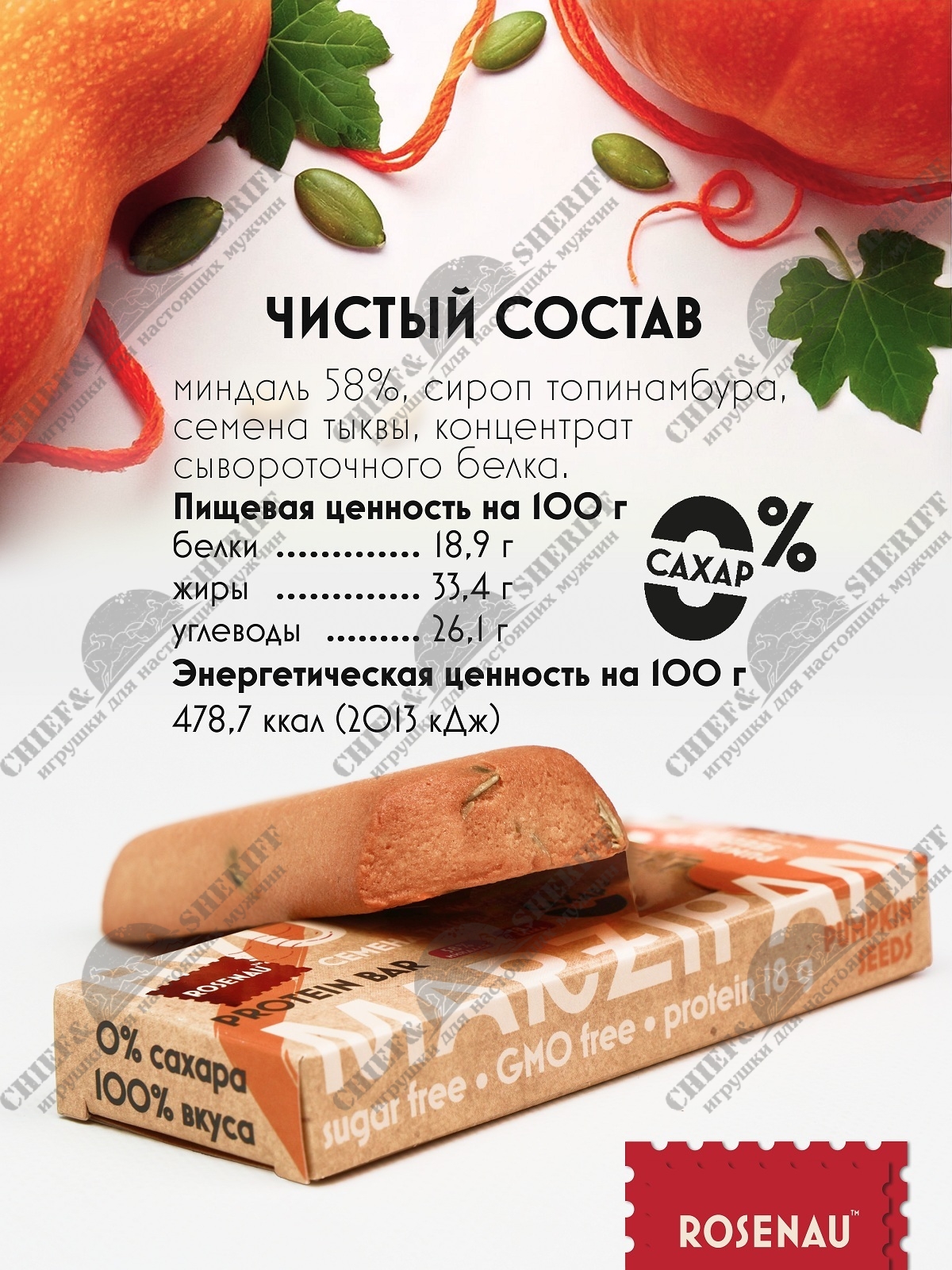 Отзывы — Марципан с семенами тыквы запеченный батончик без сахара, ROSENAU, 3 X 47 гр