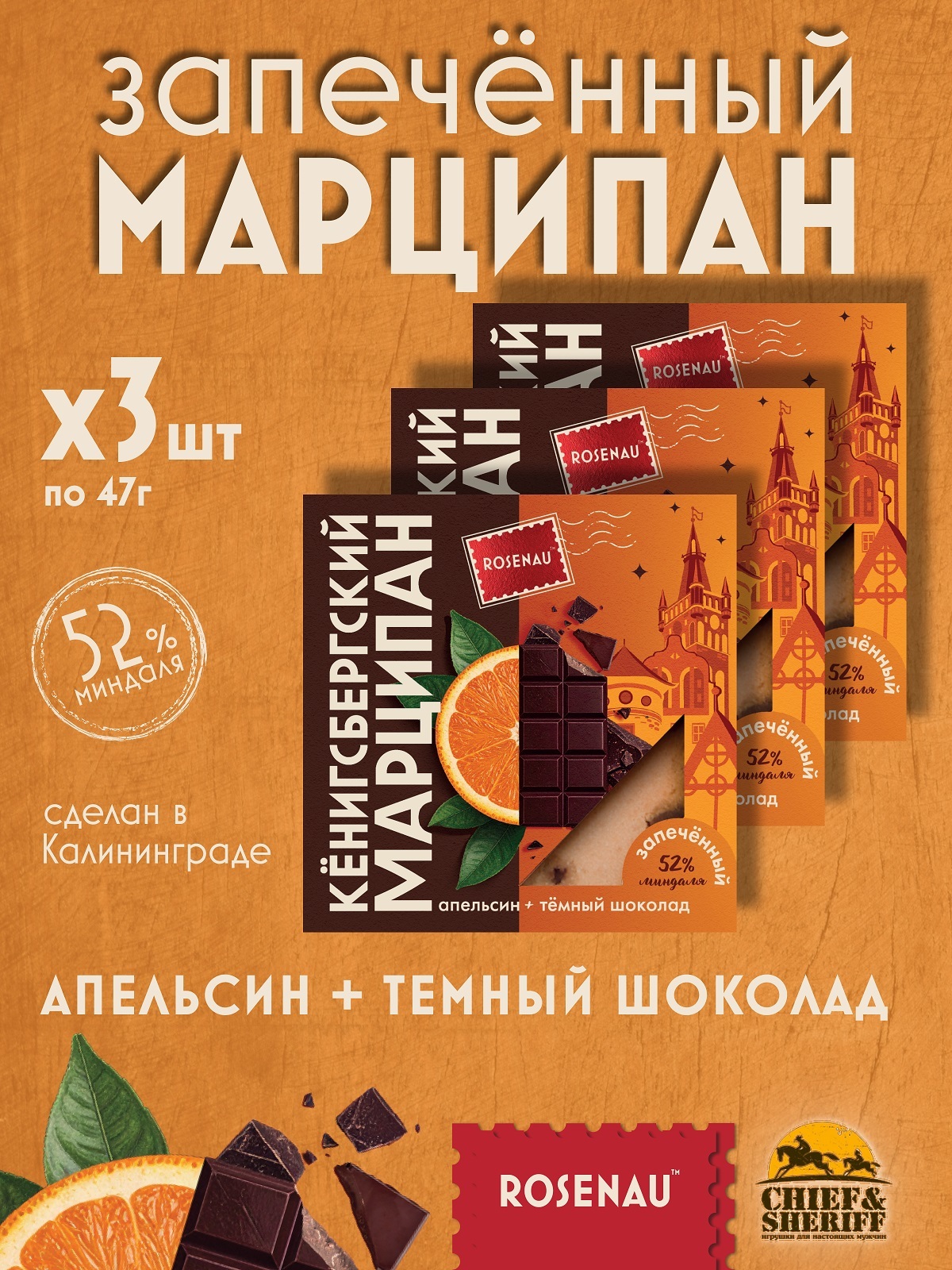 Марципан запеченный с апельсином и темным шоколадом (миндаль 52%), ROSENAU, 3 X 50 гр