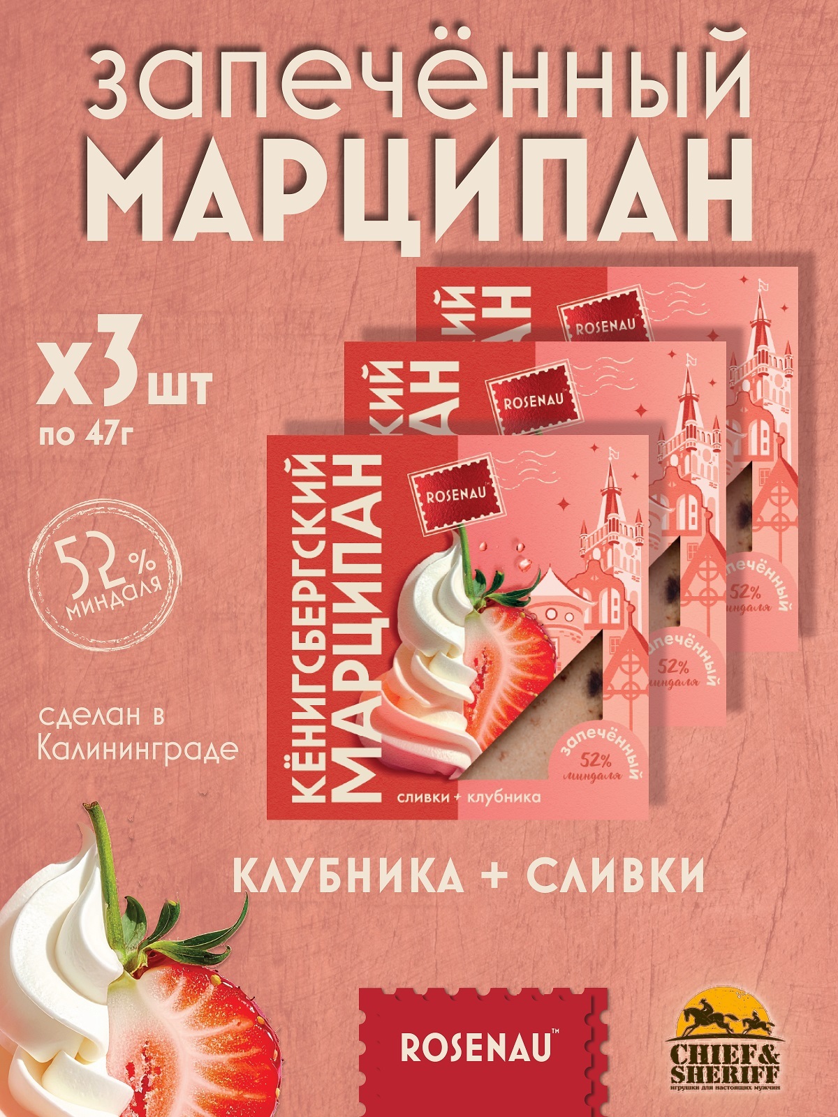 Марципан запеченный с клубникой и сливками (миндаль 52%), ROSENAU, 3 X 50 гр