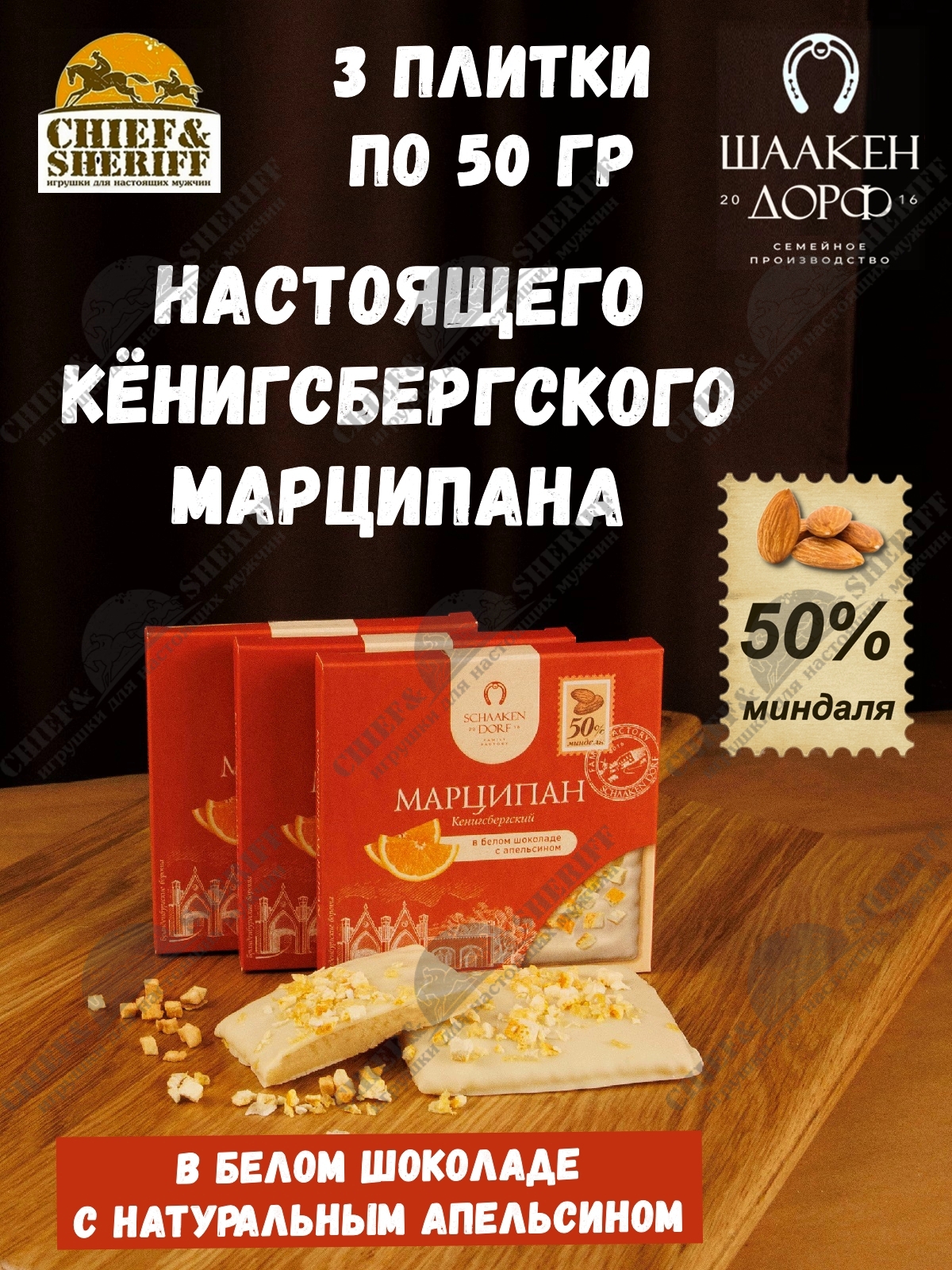 Марципановая плитка в белом шоколаде с апельсином, SCHAAKEN DORF, 3 X 50 гр Марципановая плитка в белом шоколаде с апельсином, SCHAAKEN DORF, 3 X 50 гр