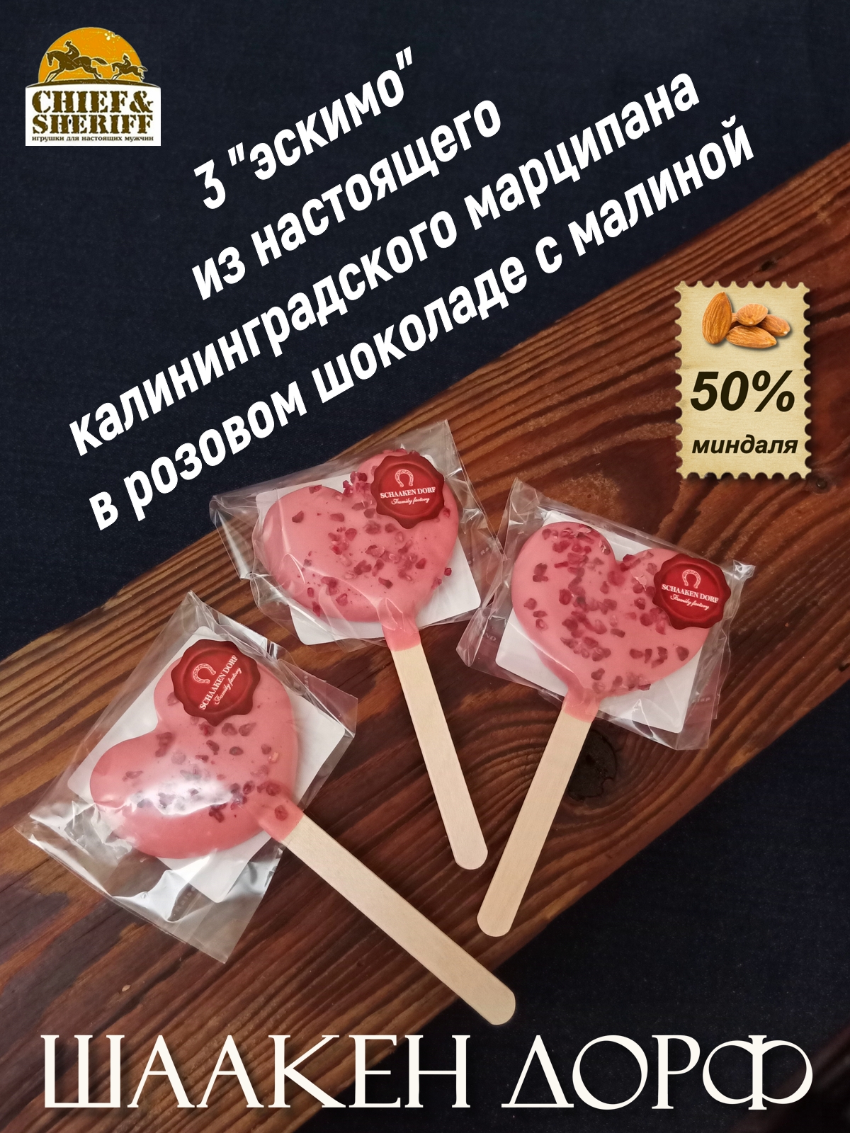 Отзывы — Марципановое "мороженое" "Сердце" в розовом шоколаде с малиной, SCHAAKEN DORF, 3 X 30 гр