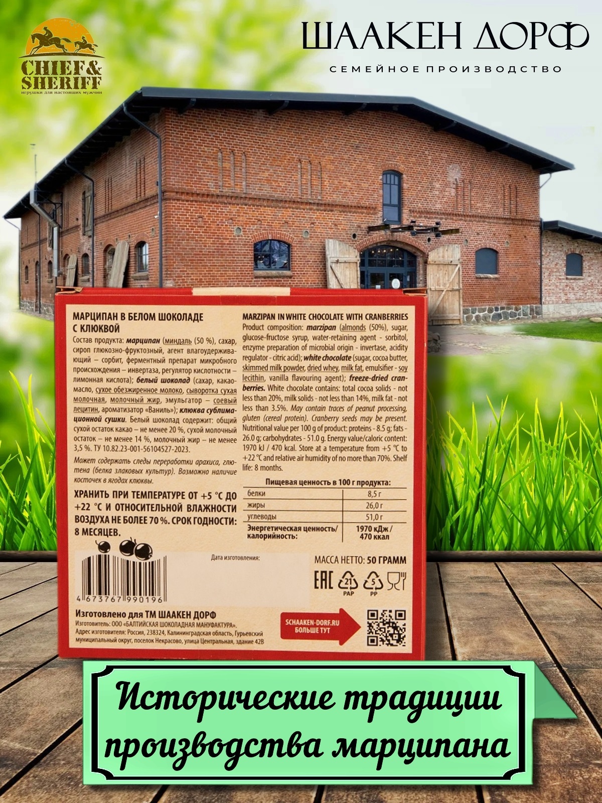 Марципановая плитка в белом шоколаде с клюквой, SCHAAKEN DORF, 3 X 50 гр