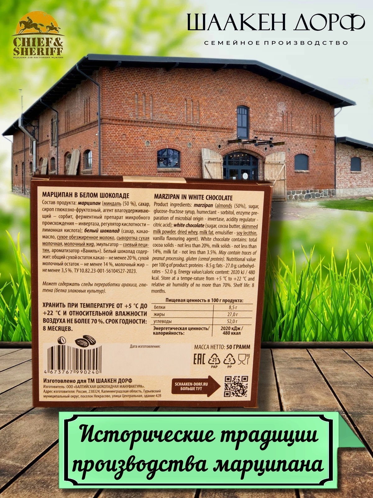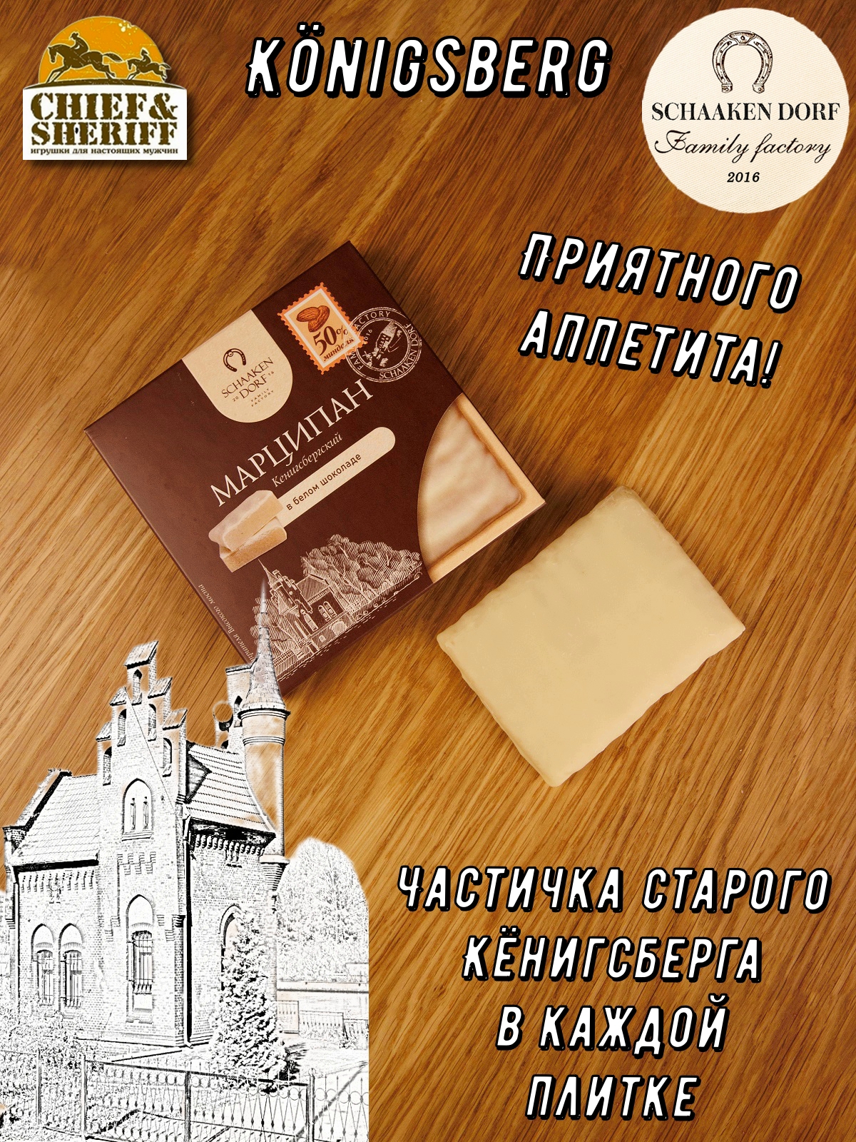 Шаакен Дорф - семейное производство сыра, марципана, шоколада, конфет и зефира. Производство компании Шаакен Дорф находится в Калининграде, в здании, которое когда-то было конюшней при замке Шаакен - рыцарей еще тевтонского ордена. Сейчас на первом этаже находится производство сыра. На втором этаже располагается небольшое кондитерское производство. Здесь вручную варится зефир, делаются карамелизированные апельсины в темном шоколаде, сублимированные ягоды, а также создается абсолютно разный и такой всеми полюбившийся калининградский марципан. В 2024 году, компания Шаакен Дорф стала победителем в номинациях «Лучшее туристическое направление года в номинации агротуризм», «Лучшее крестьянско-фермерское хозяйство», «Лучшее хозяйство в отрасли переработки молока», «Лучший объект туристического показа» и многих других! Марципан от Schaaken Dorf как минимум не уступает по качеству немецкому марципану от лучших производителей марципана из Германии. Попробуйте - и убедитесь сами!
