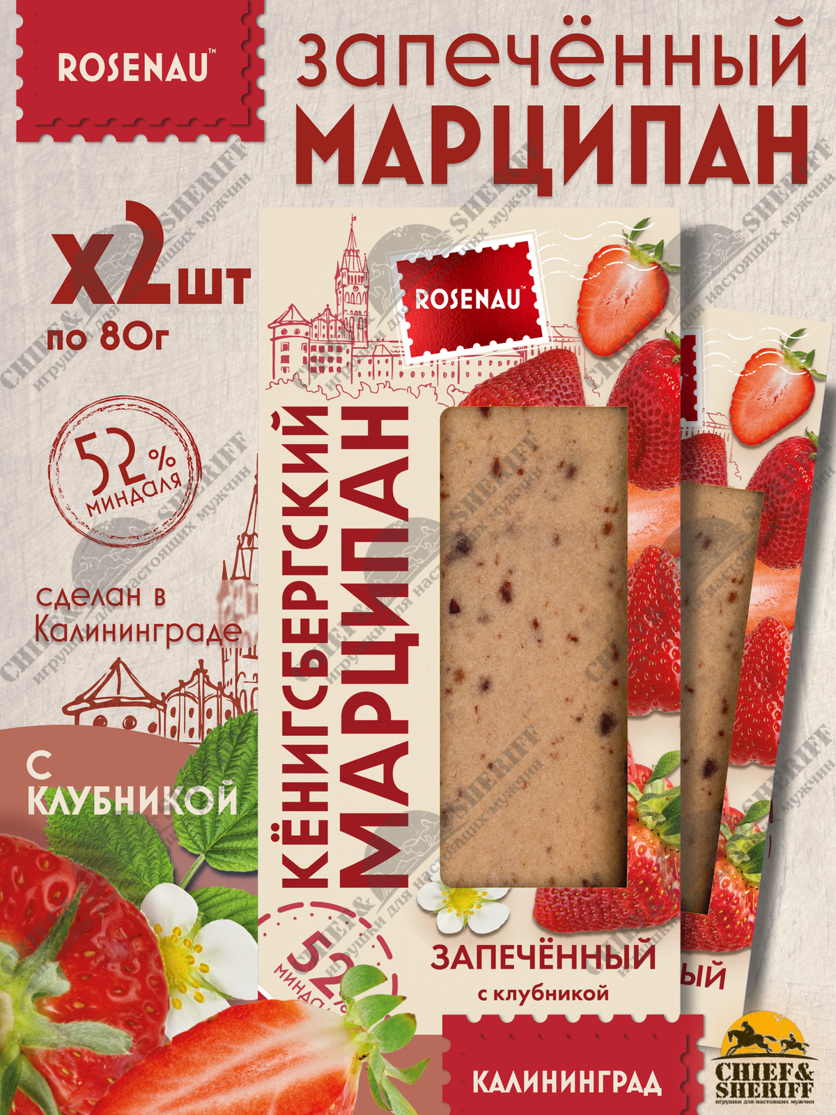 Марципан запеченный с клубникой (миндаль 52%), ROSENAU, 2 X 80 гр Марципан запеченный с клубникой (миндаль 52%), ROSENAU, 2 X 80 гр