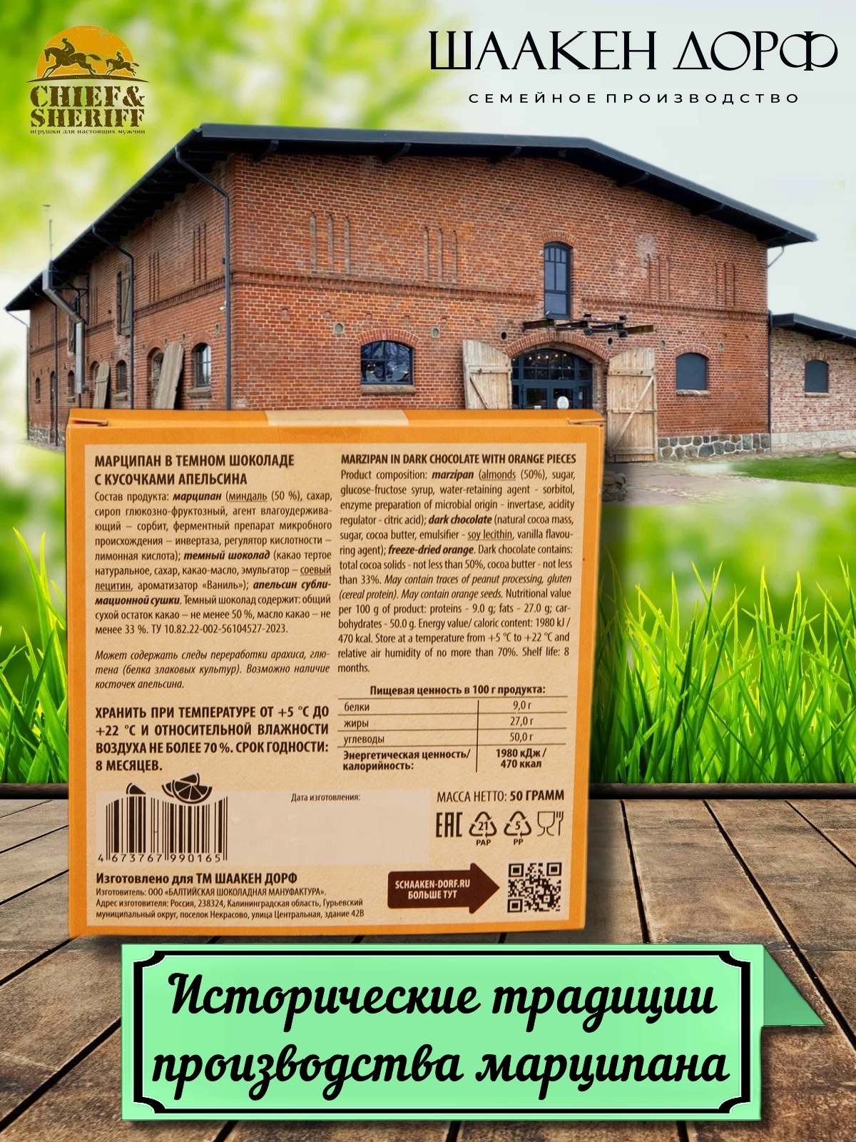 Марципановая плитка в темном шоколаде с апельсином, SCHAAKEN DORF, 3 X 50 гр