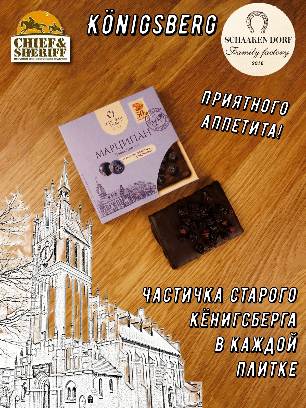 Шаакен Дорф - семейное производство сыра, марципана, шоколада, конфет и зефира. Производство компании Шаакен Дорф находится в Калининграде, в здании, которое когда-то было конюшней при замке Шаакен - рыцарей еще тевтонского ордена. Сейчас на первом этаже находится производство сыра. На втором этаже располагается небольшое кондитерское производство. Здесь вручную варится зефир, делаются карамелизированные апельсины в темном шоколаде, сублимированные ягоды, а также создается абсолютно разный и такой всеми полюбившийся калининградский марципан. В 2024 году, компания Шаакен Дорф стала победителем в номинациях «Лучшее туристическое направление года в номинации агротуризм», «Лучшее крестьянско-фермерское хозяйство», «Лучшее хозяйство в отрасли переработки молока», «Лучший объект туристического показа» и многих других! Марципан от Schaaken Dorf как минимум не уступает по качеству немецкому марципану от лучших производителей марципана из Германии. Попробуйте - и убедитесь сами!