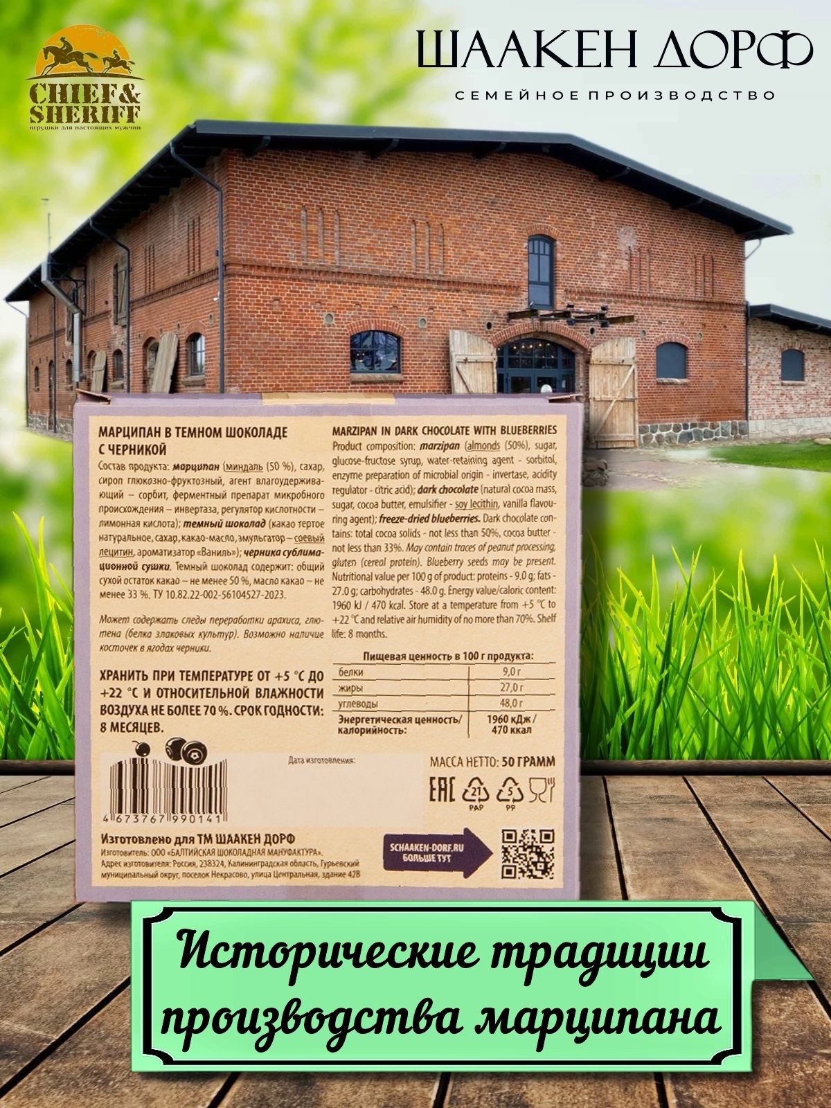 Марципановая плитка в темном шоколаде с черникой, SCHAAKEN DORF, 3 X 50 гр