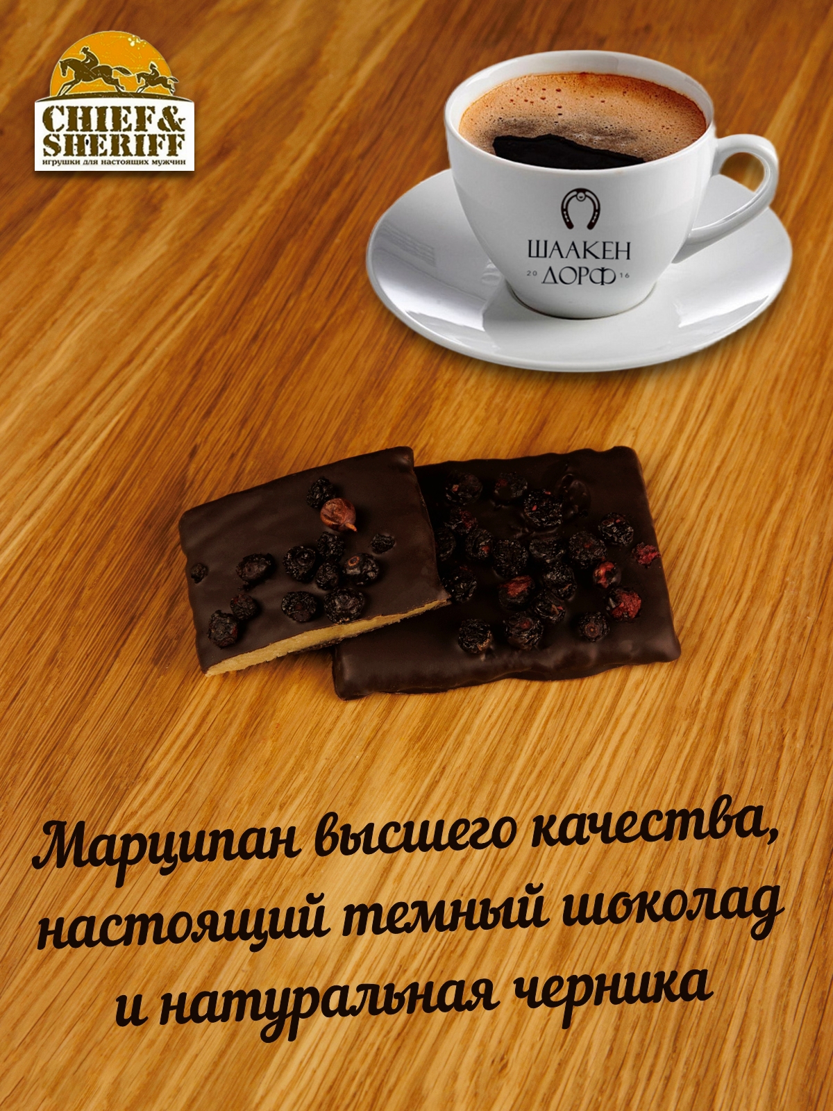 Калининградский марципан, покрытый темным шоколадом с черникой- это изысканное лакомство, которое подарит вам незабываемое удовольствие от вкуса. Каждая плитка марципана весом 50 граммов изготовлена с любовью и вниманием к деталям, что делает его идеальным выбором для сладкоежек и ценителей качественных кондитерских изделий.